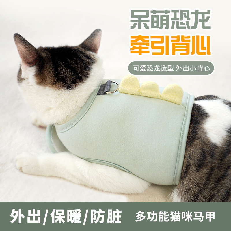 2022 크로스 보더 새로운 더미 공룡 고양이 견인 로프 조끼 스타일 가슴 스트랩 이탈 방지 고양이 용품 사용자 정의스토어 가기