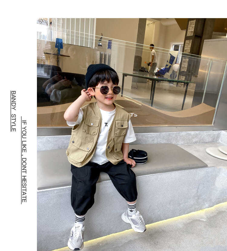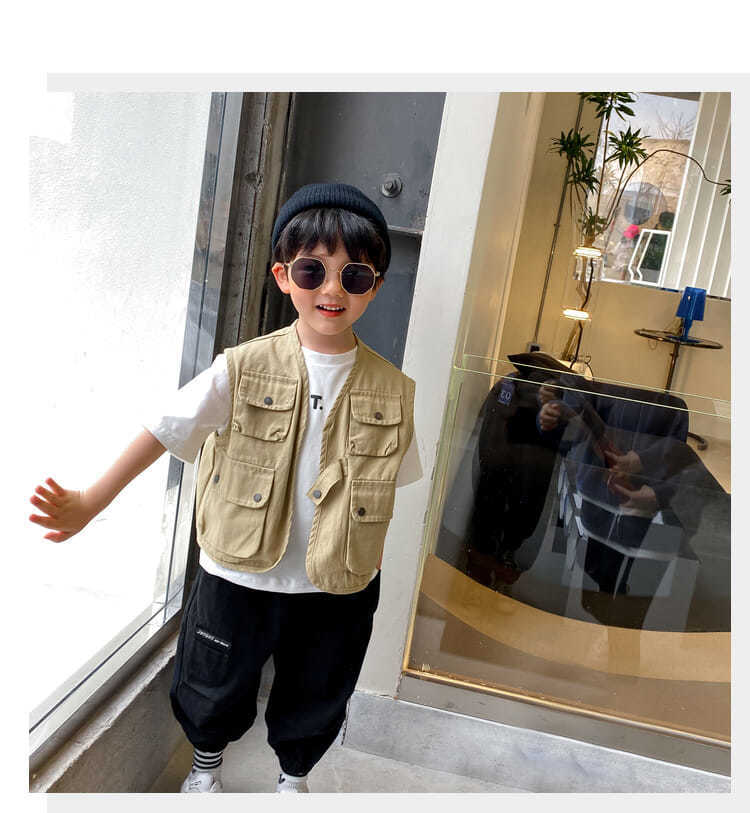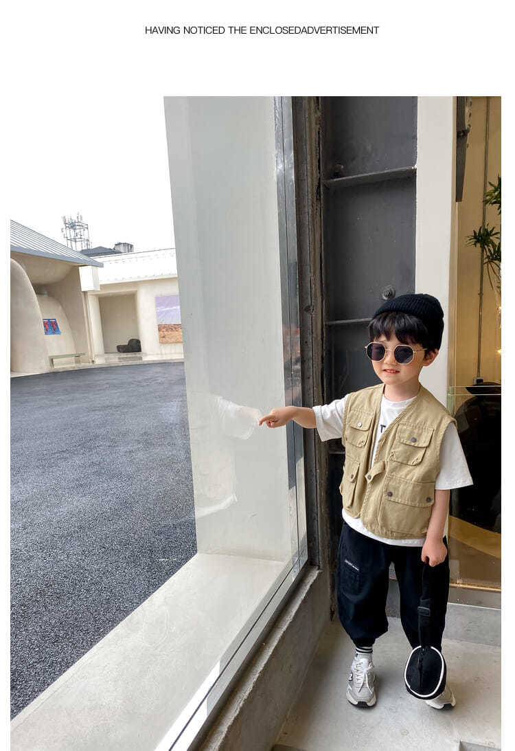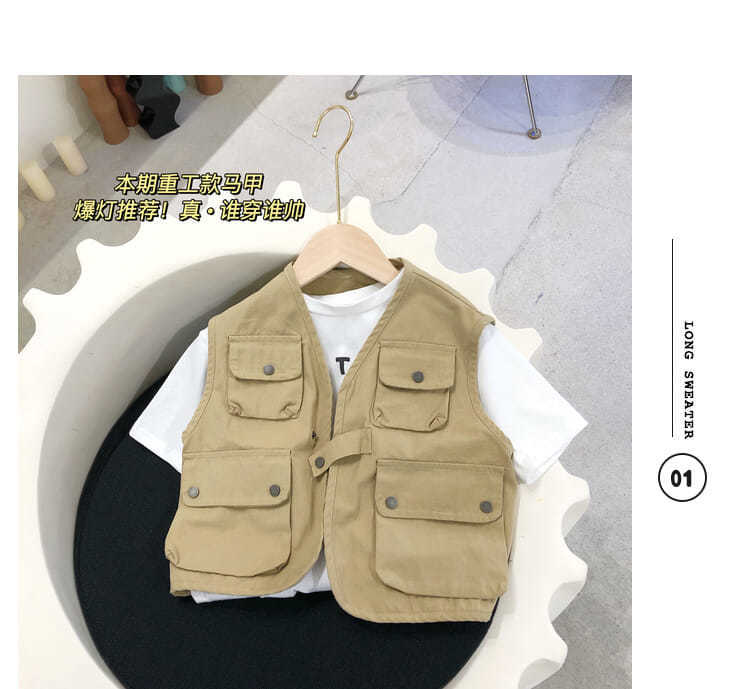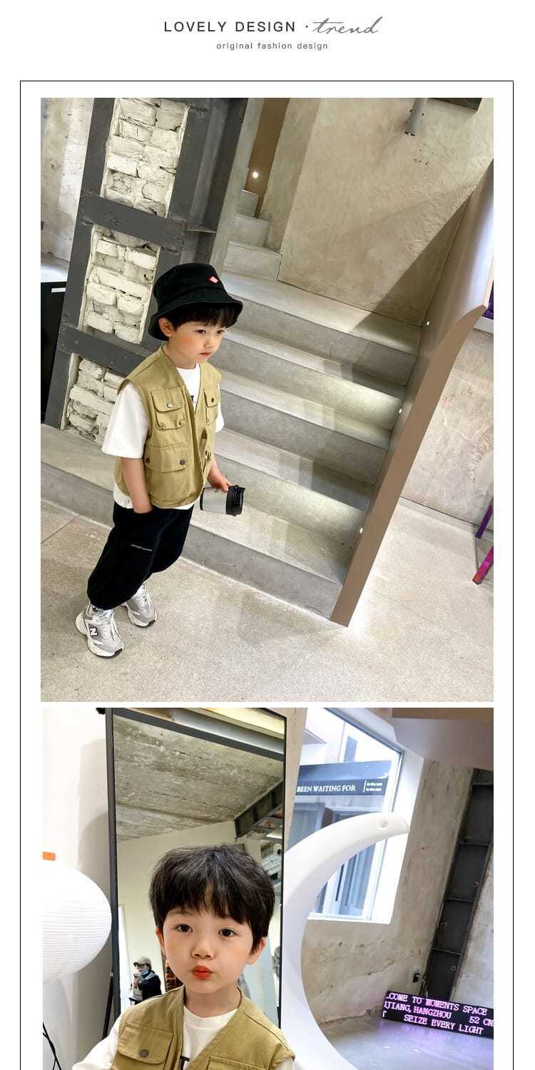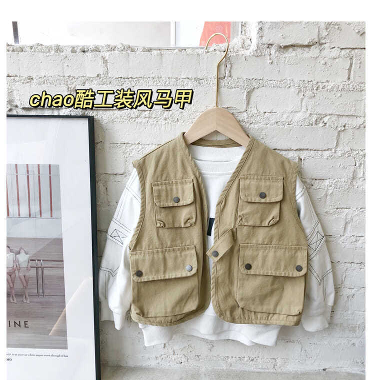 소년 작업복 스타일 조끼 2023 봄과 가을 새로운 어린이 서양식 조끼 아기의 가을 코트 유행 옷스토어 가기