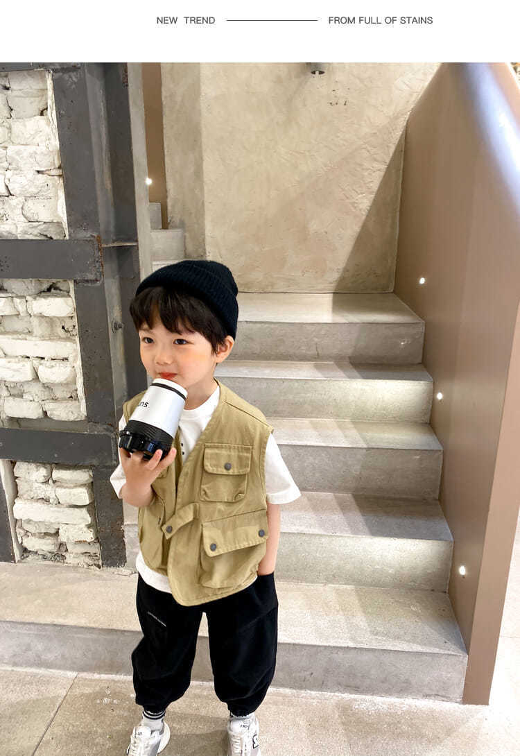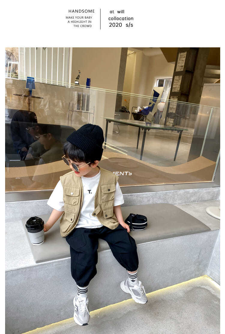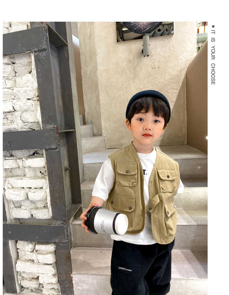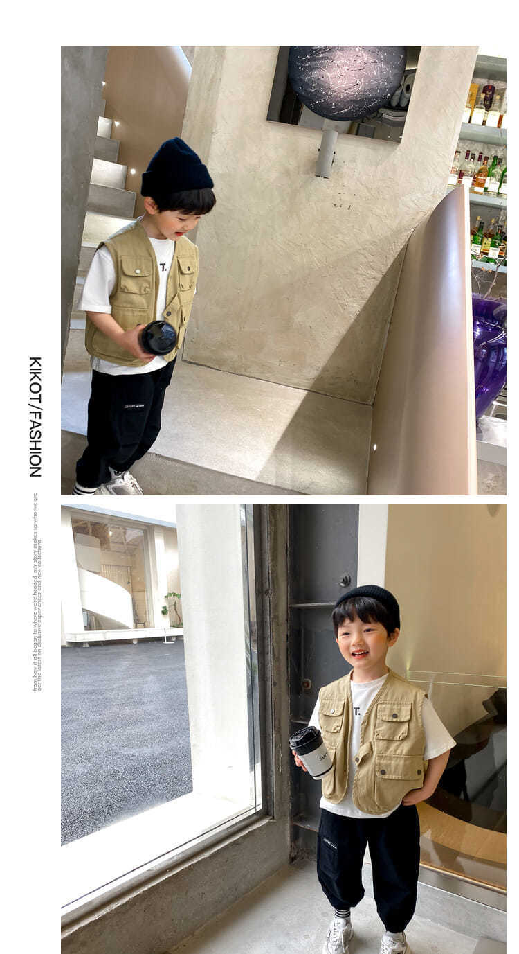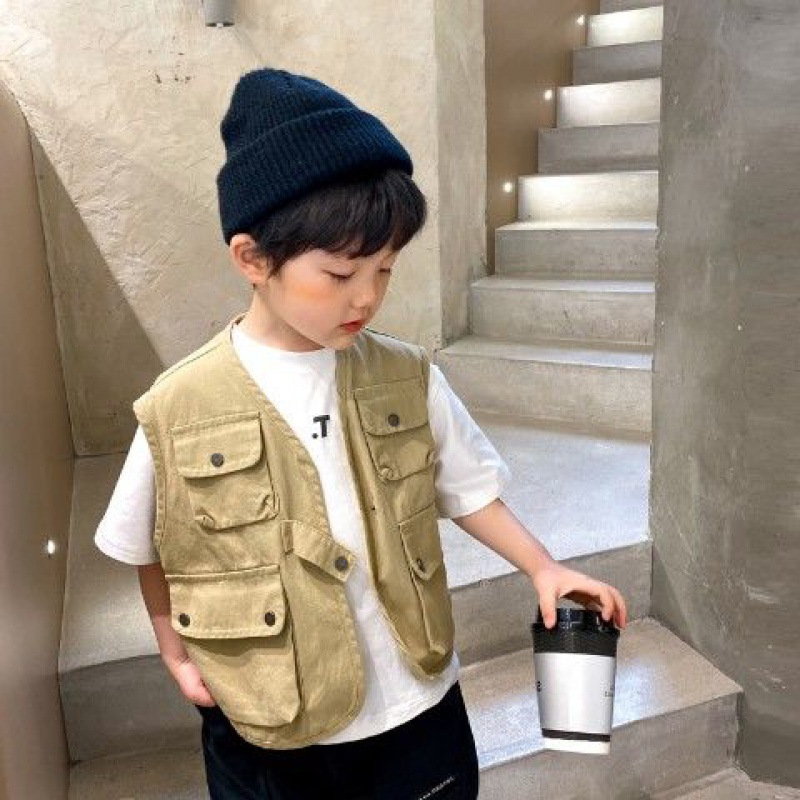 소년 작업복 스타일 조끼 2023 봄과 가을 새로운 어린이 서양식 조끼 아기의 가을 코트 유행 옷스토어 가기
