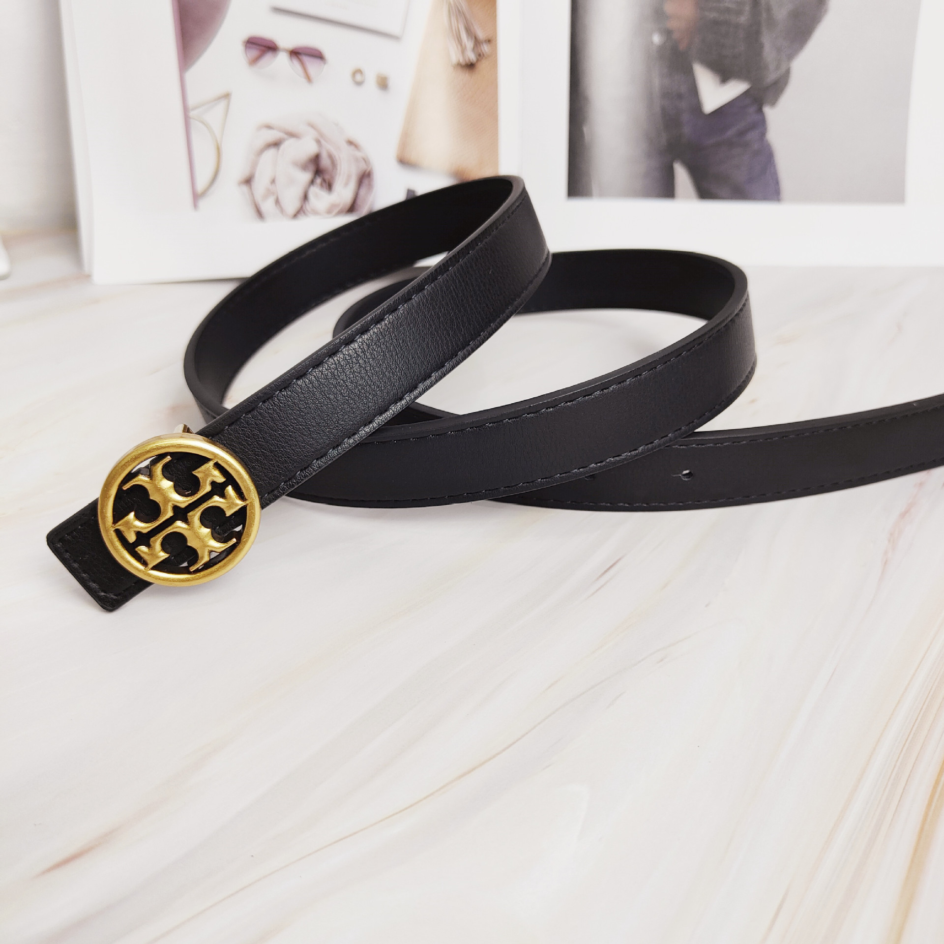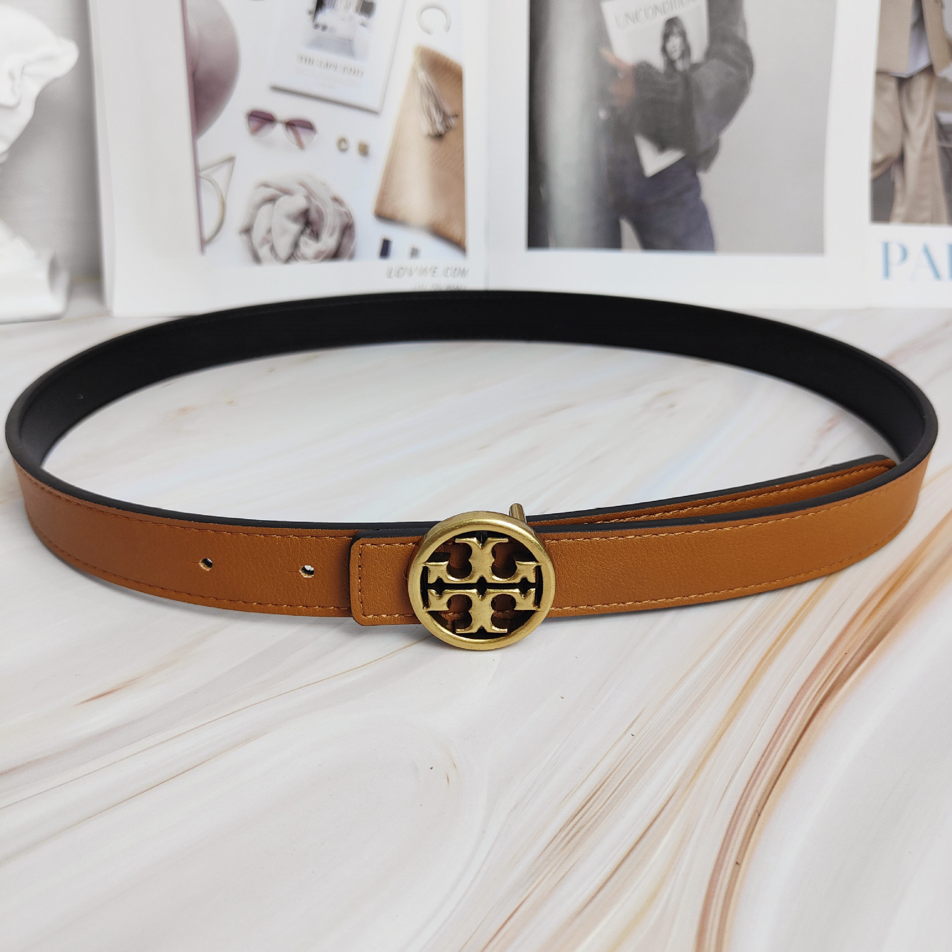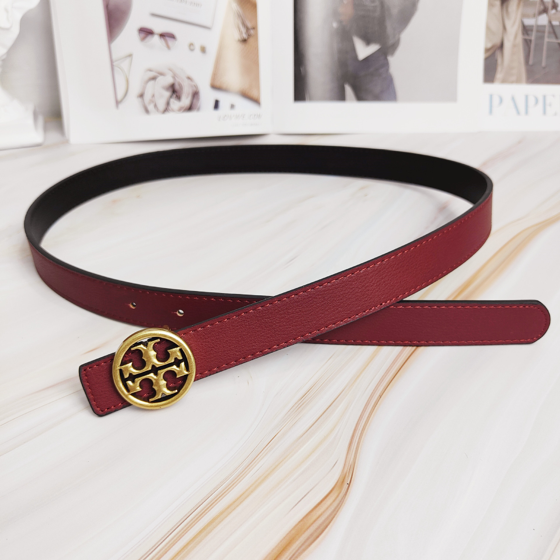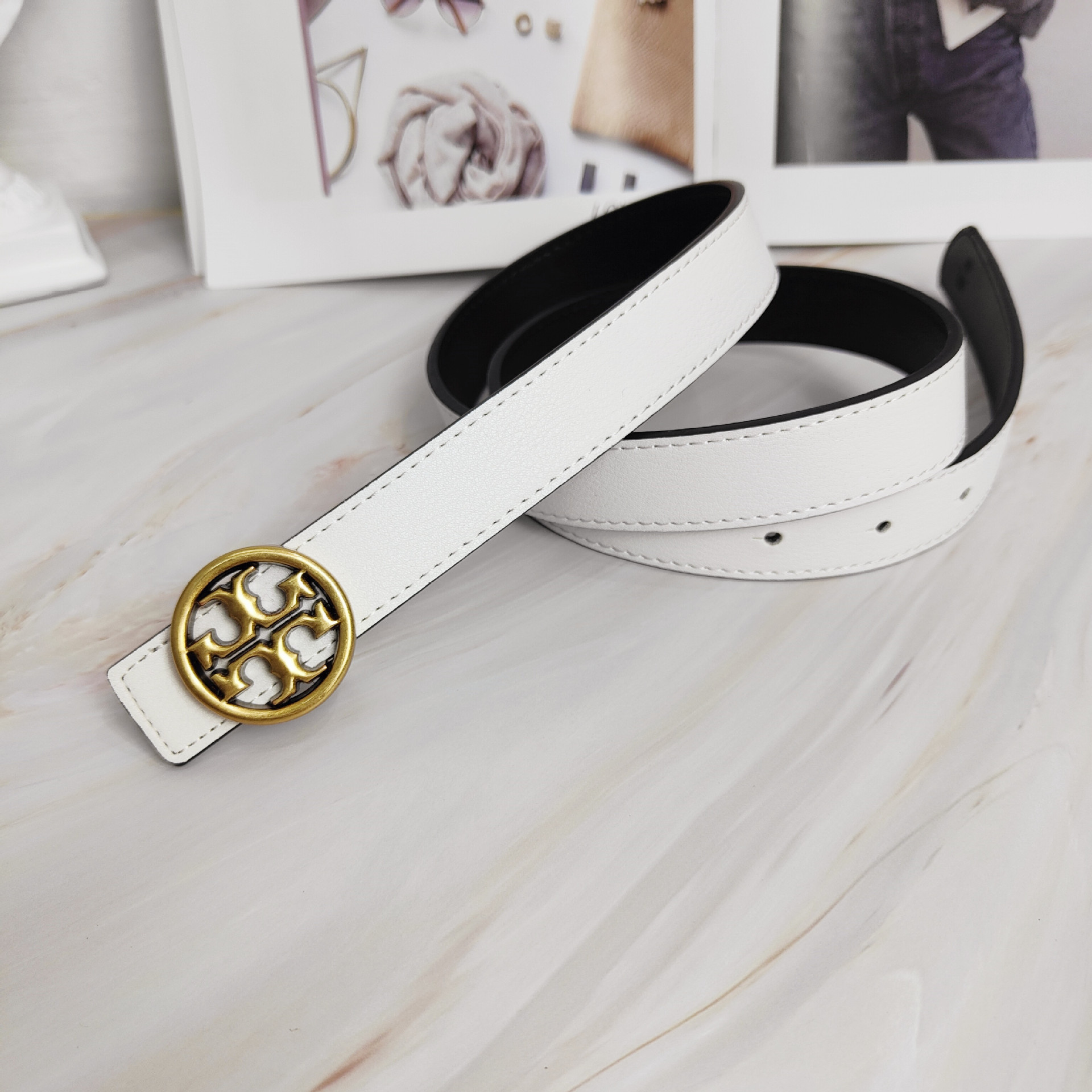 2022 신상 컬러풀 소가죽 벨트 여성용 TB 레터링 와이드 웨이스트 밴드 앤틱 브론즈 플랫 버클 다용도 벨트스토어 가기