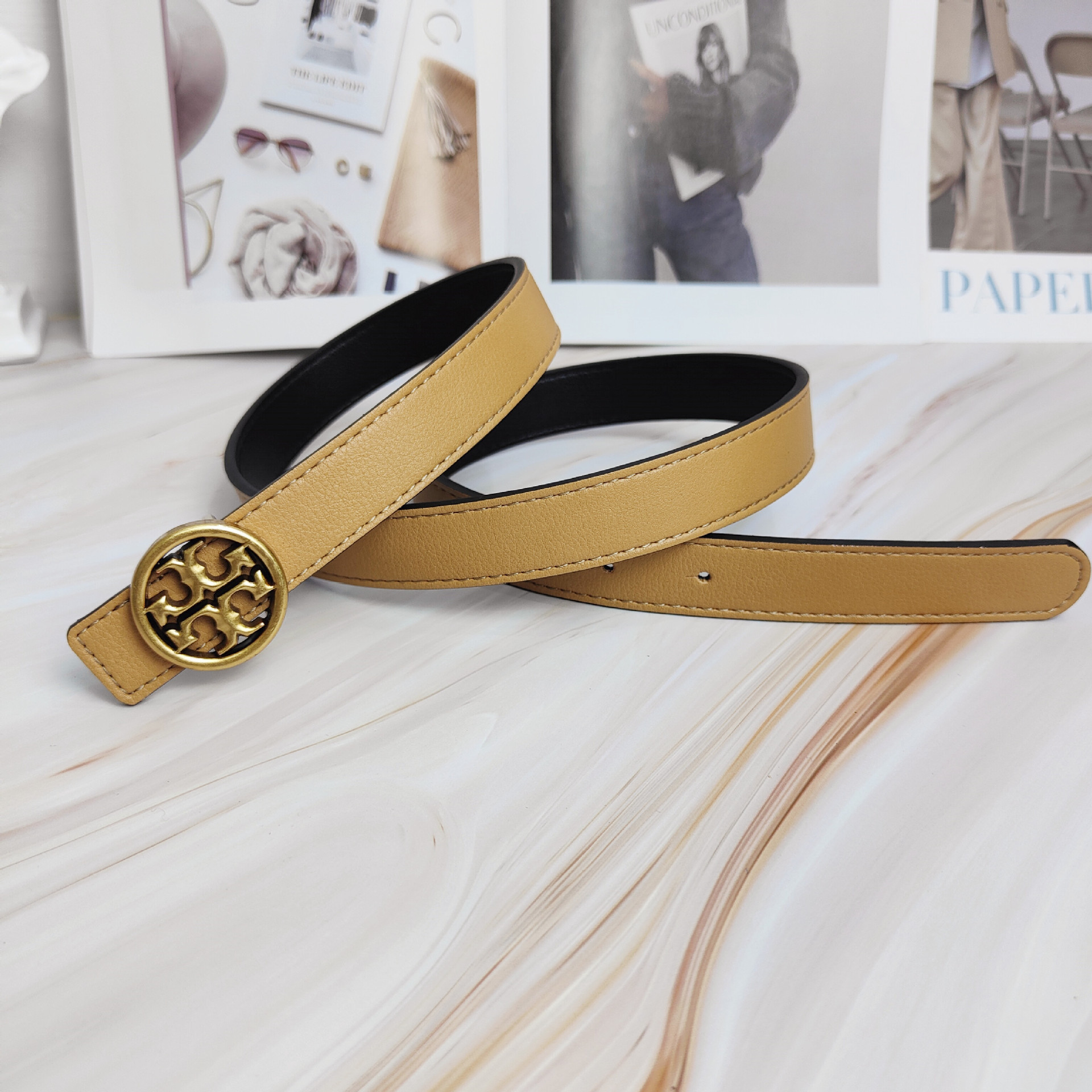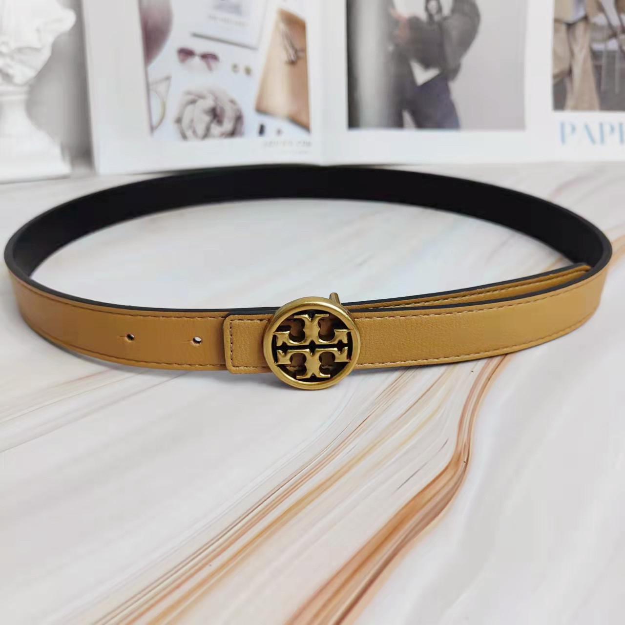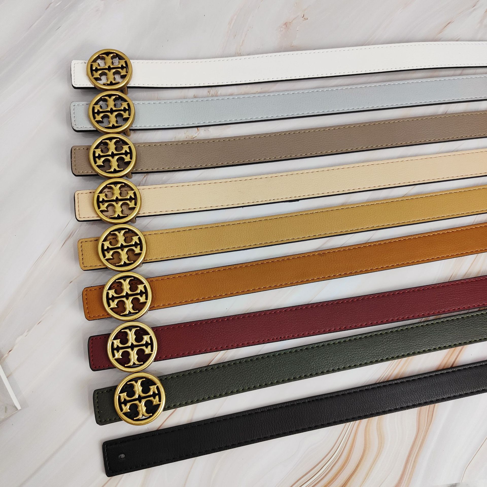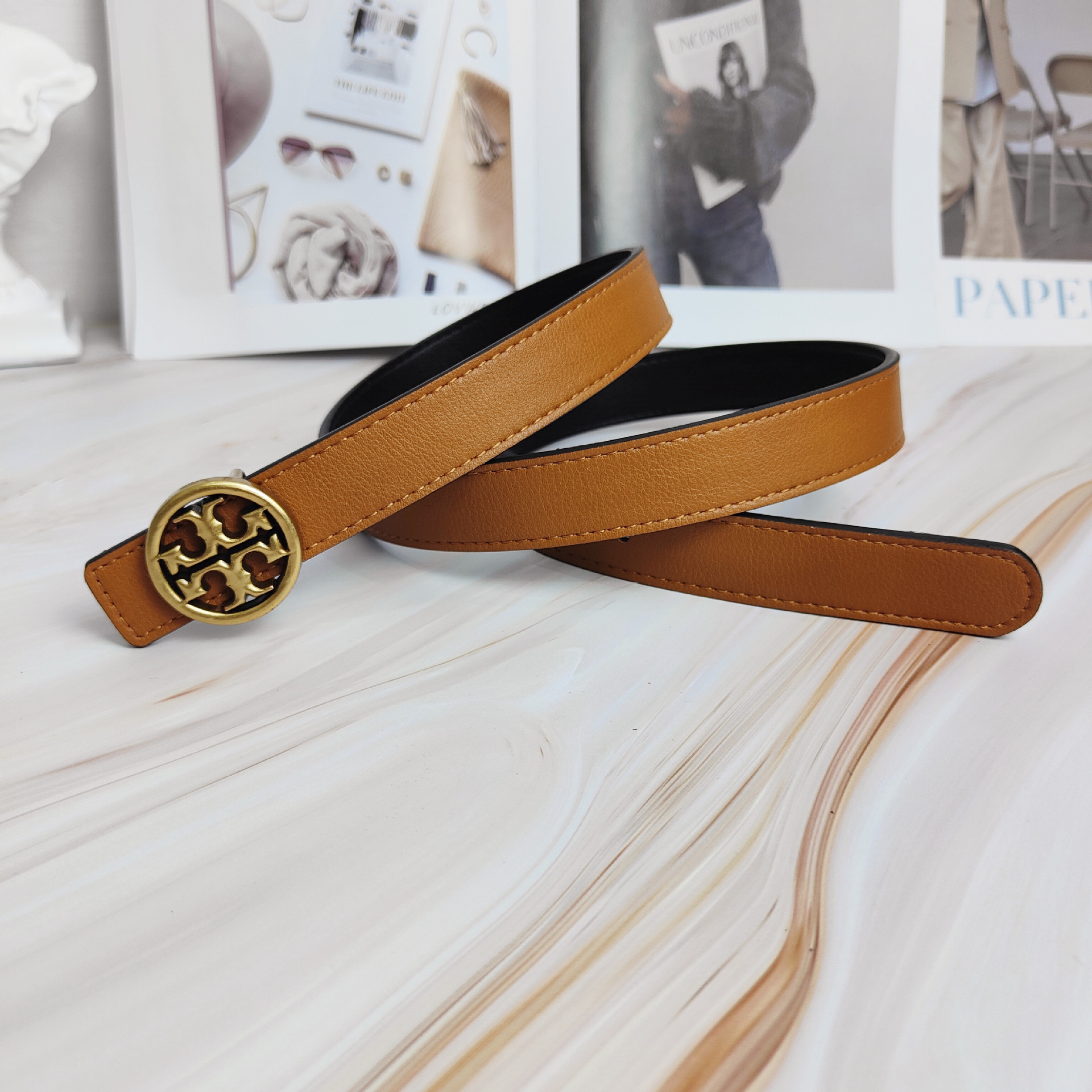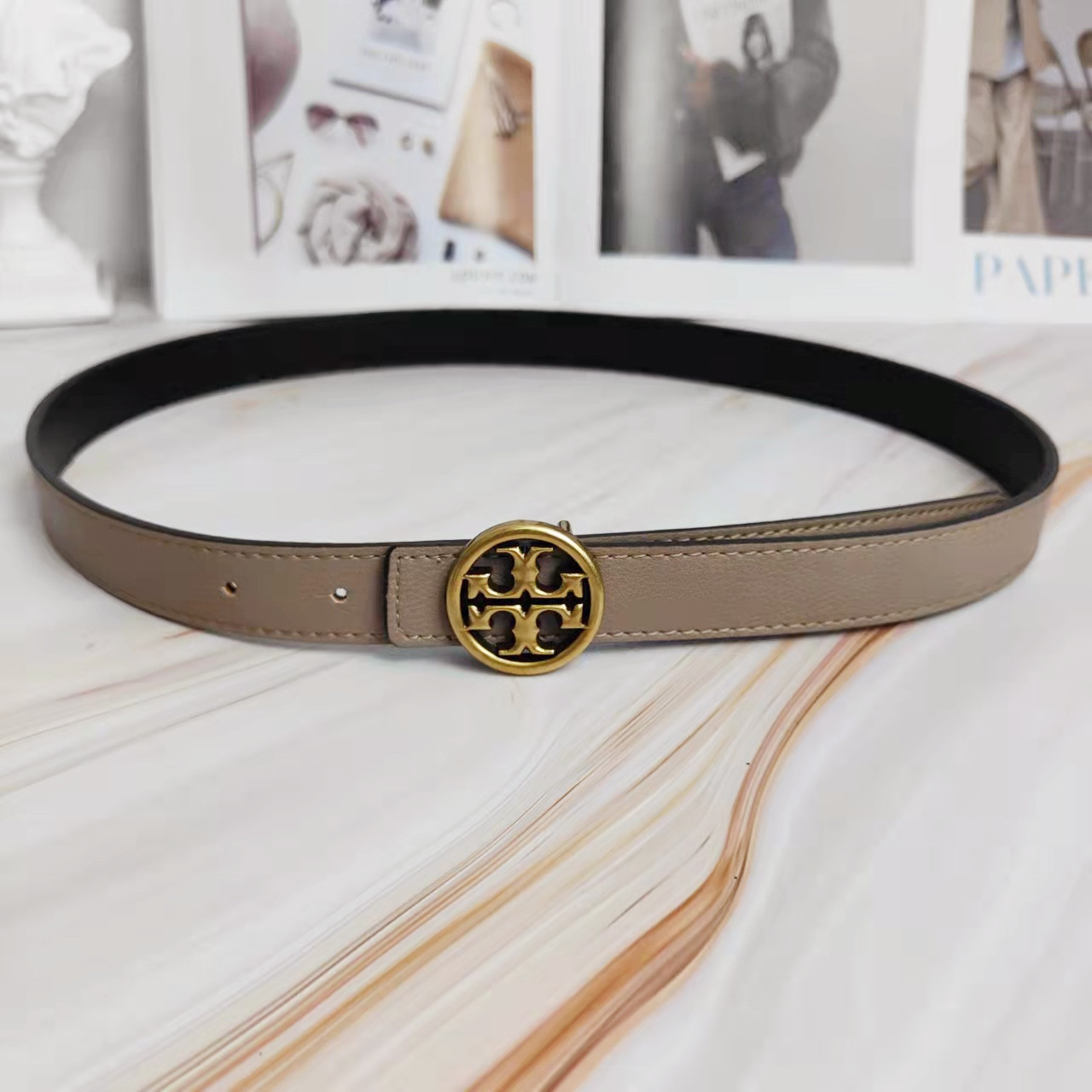 2022 신상 컬러풀 소가죽 벨트 여성용 TB 레터링 와이드 웨이스트 밴드 앤틱 브론즈 플랫 버클 다용도 벨트스토어 가기