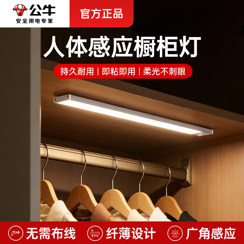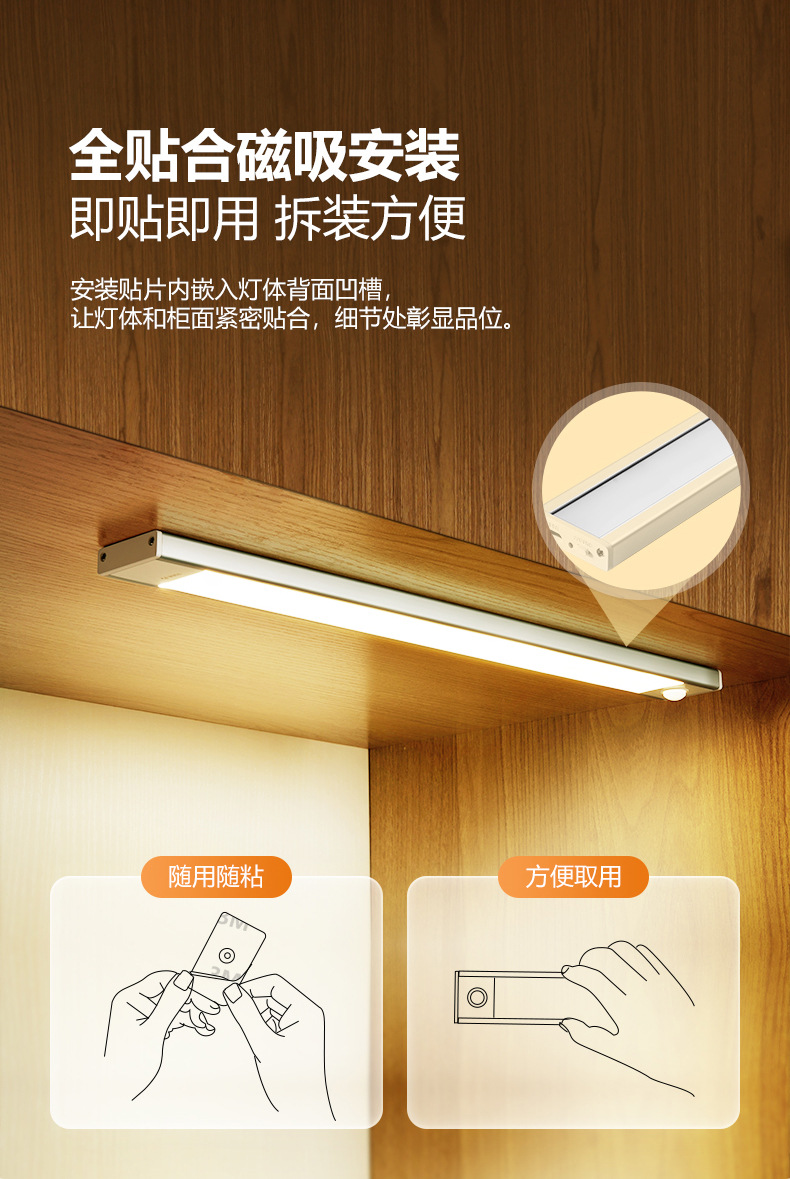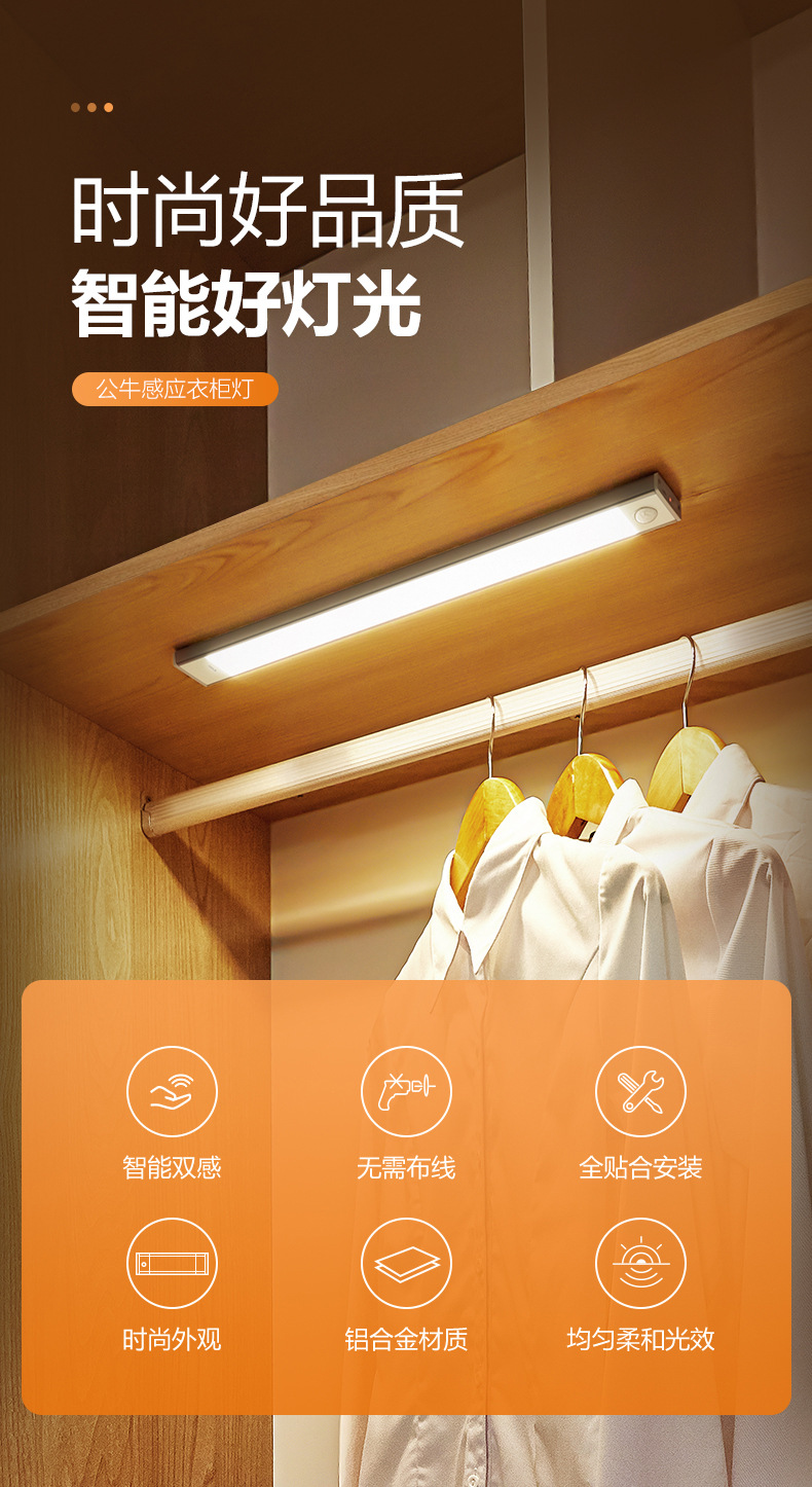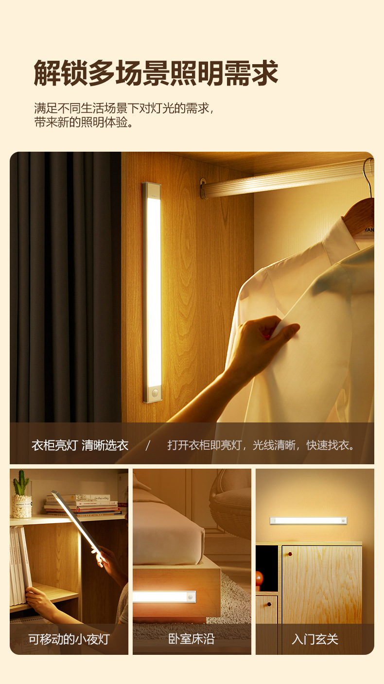 공중 감지식 캐비닛 조명, 침대 옆 야간 조명, 가정용 자동 스위치 조명, LED 에너지 절약 눈 보호형 긴 조명등스토어 가기