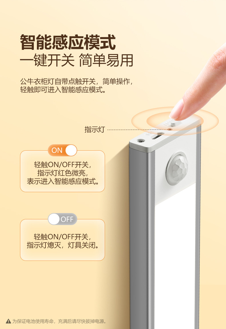 • 【60cm 온백색】 인체 감지 + 광센서 + 상시 점등 + 충전식