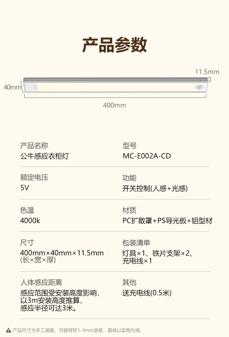 • 【30cm 온백색】 인체 감지 + 광센서 + 상시 점등 + 충전식