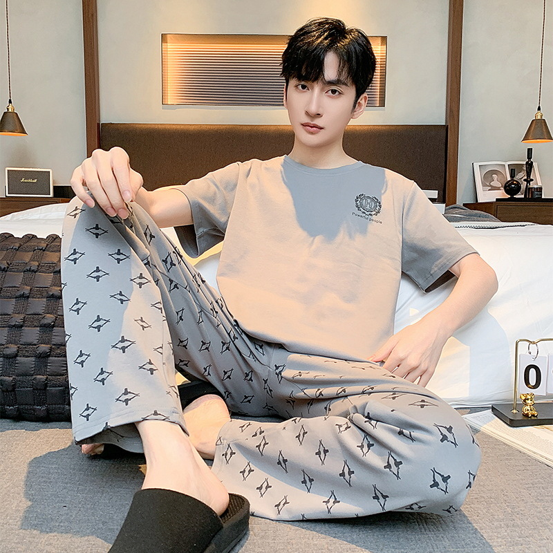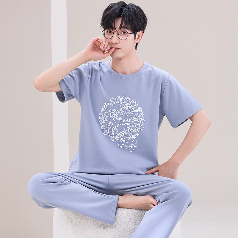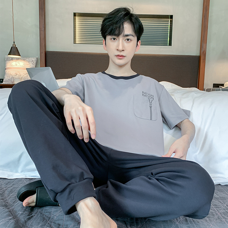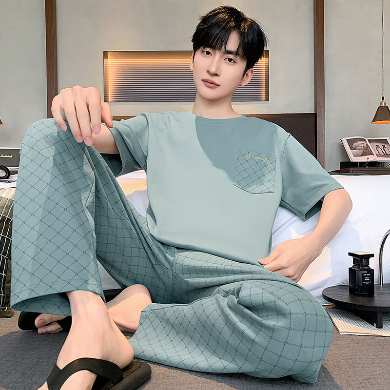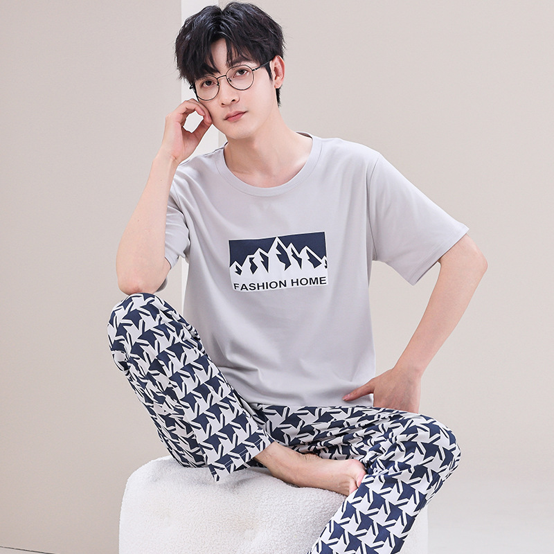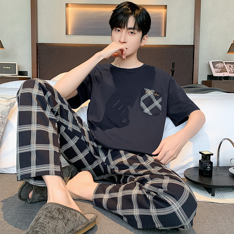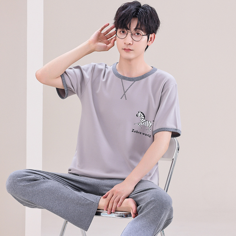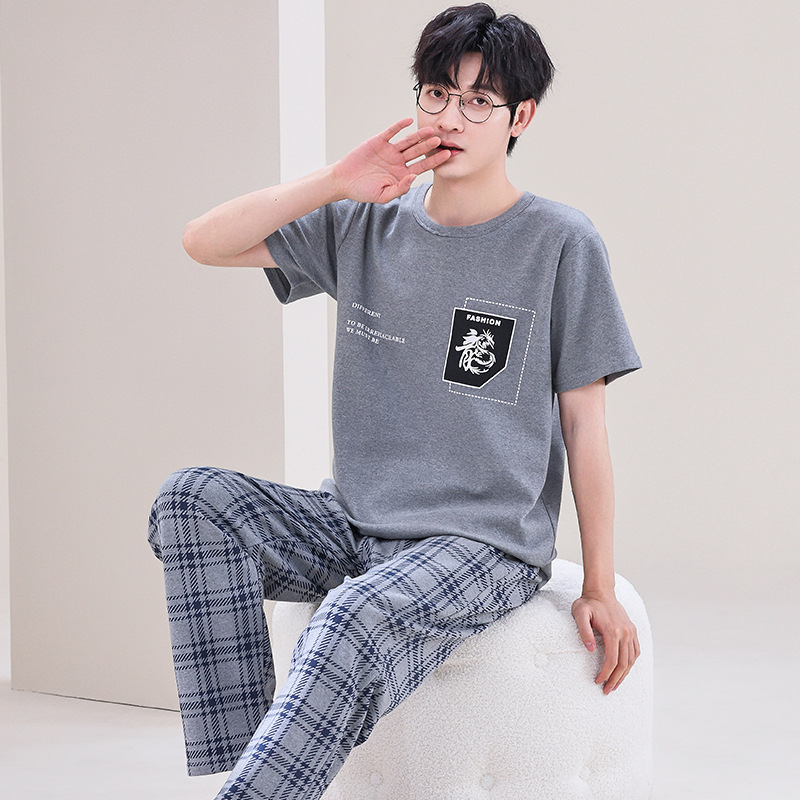 잠옷 남성용 여름 반팔 바지 심플 홈웨어 얇은 면 캐주얼 잠옷 어린 학생과 남성용 플러스 사이즈스토어 가기