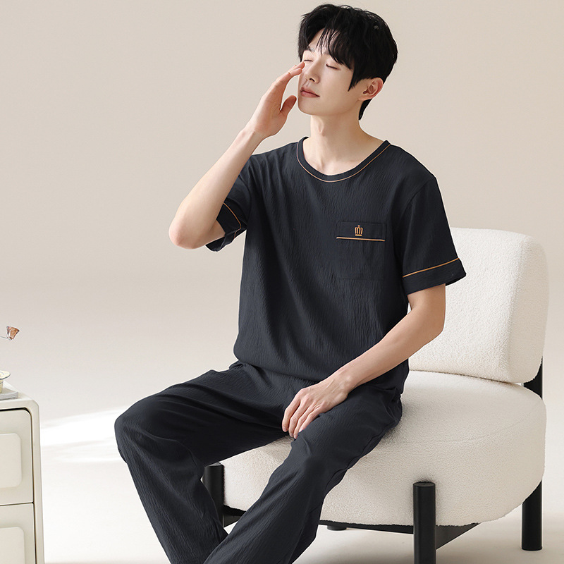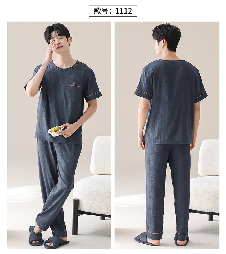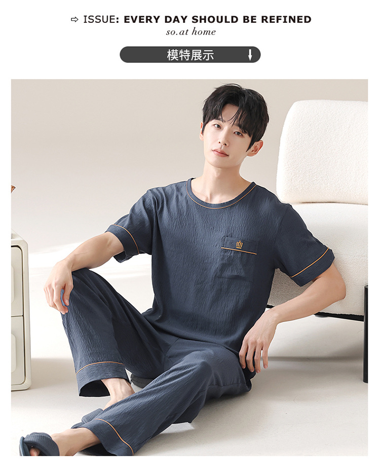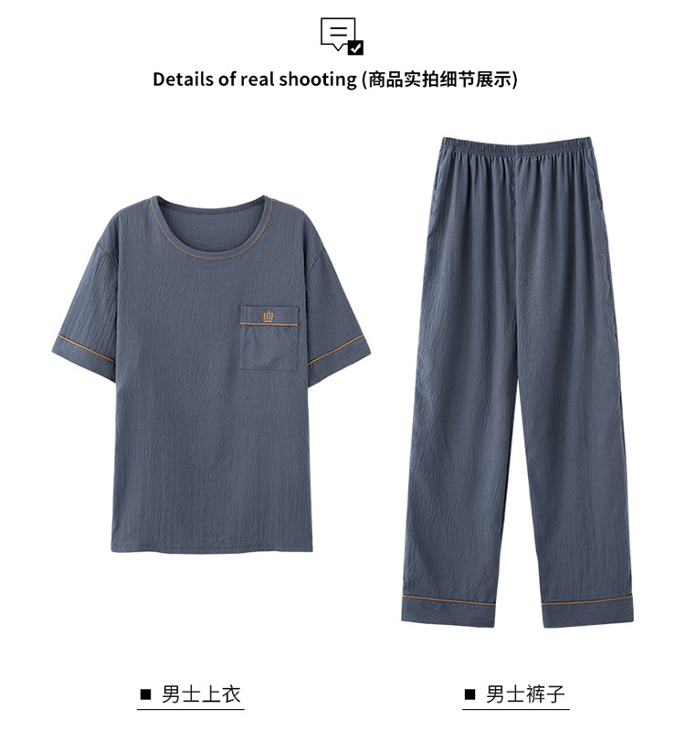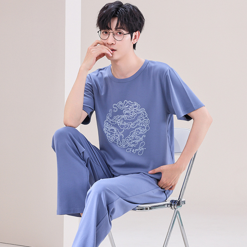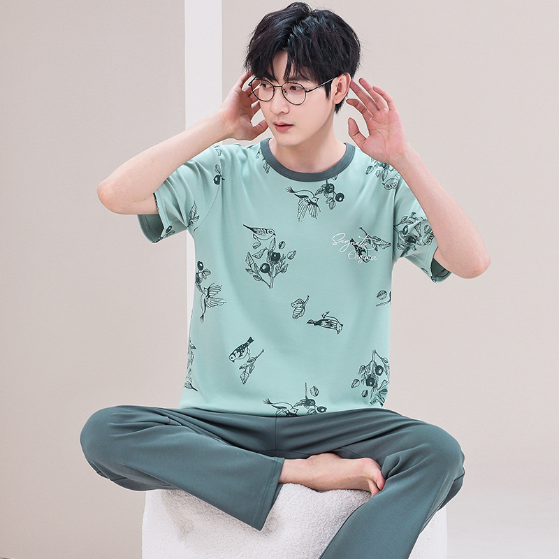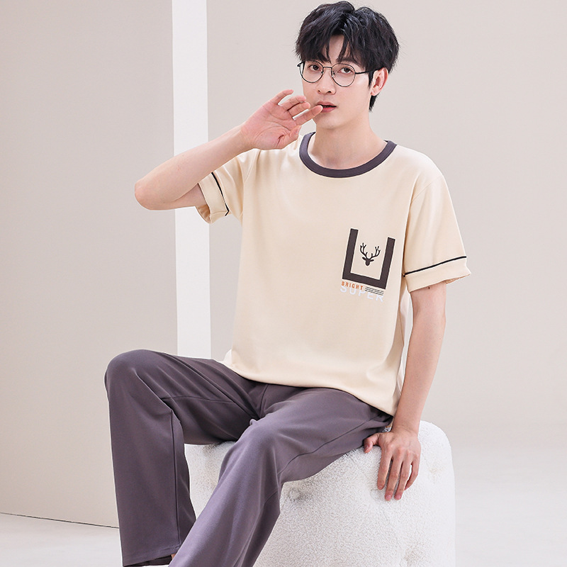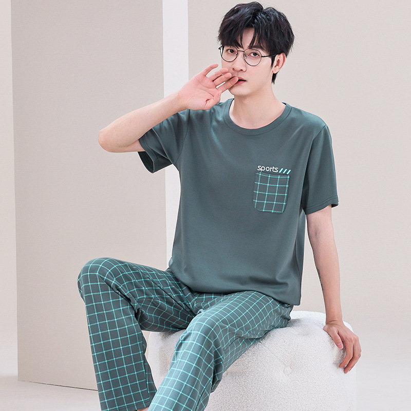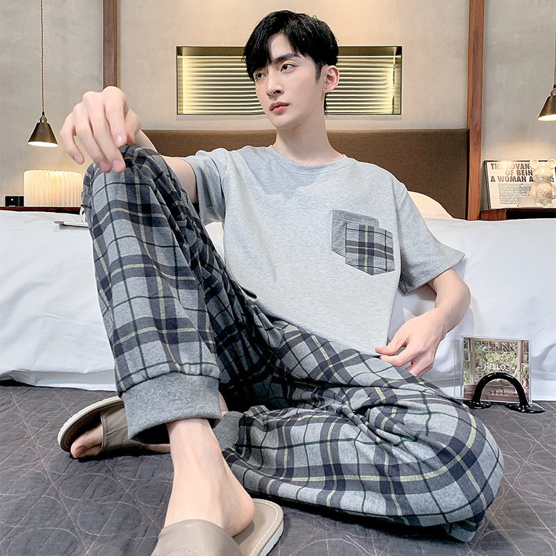 잠옷 남성용 여름 반팔 바지 심플 홈웨어 얇은 면 캐주얼 잠옷 어린 학생과 남성용 플러스 사이즈스토어 가기