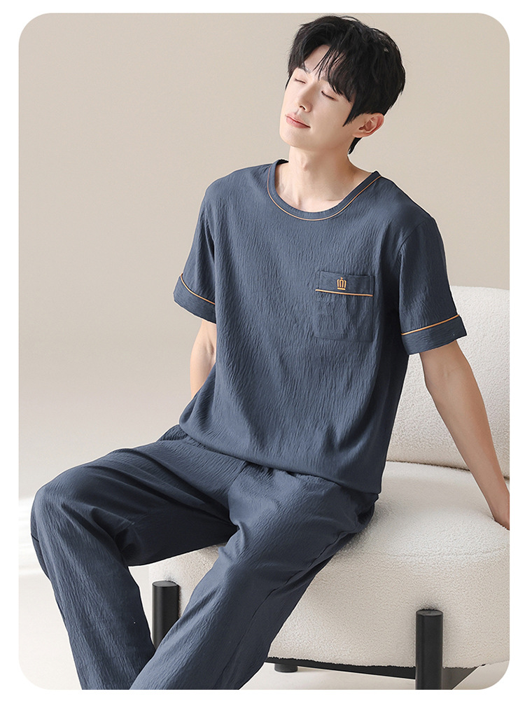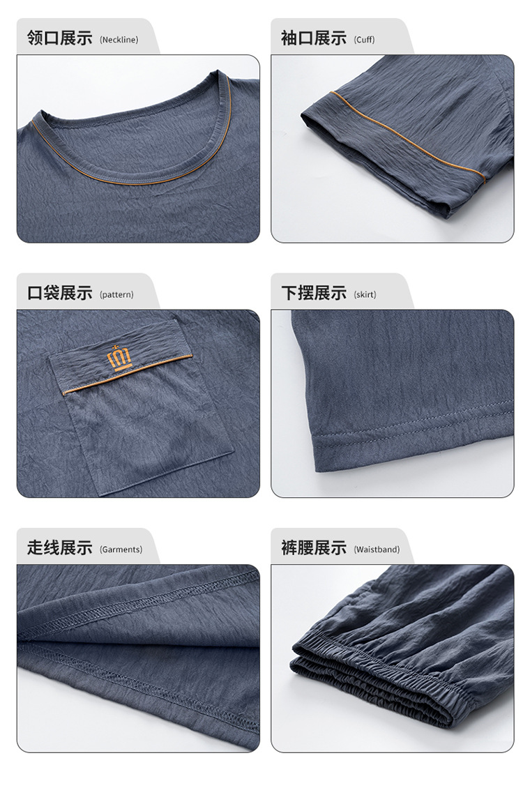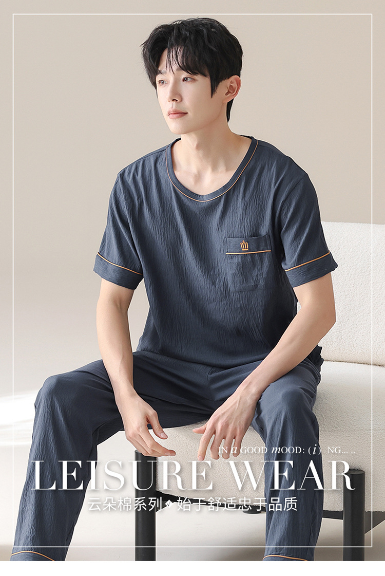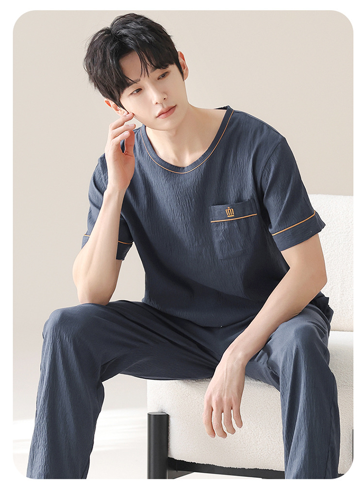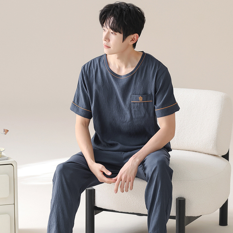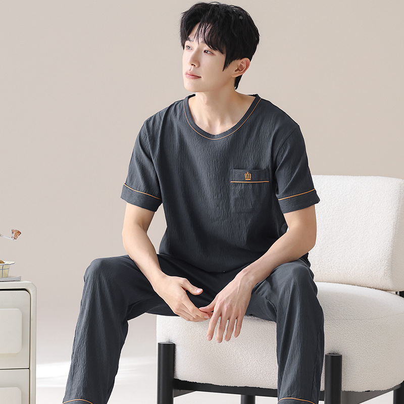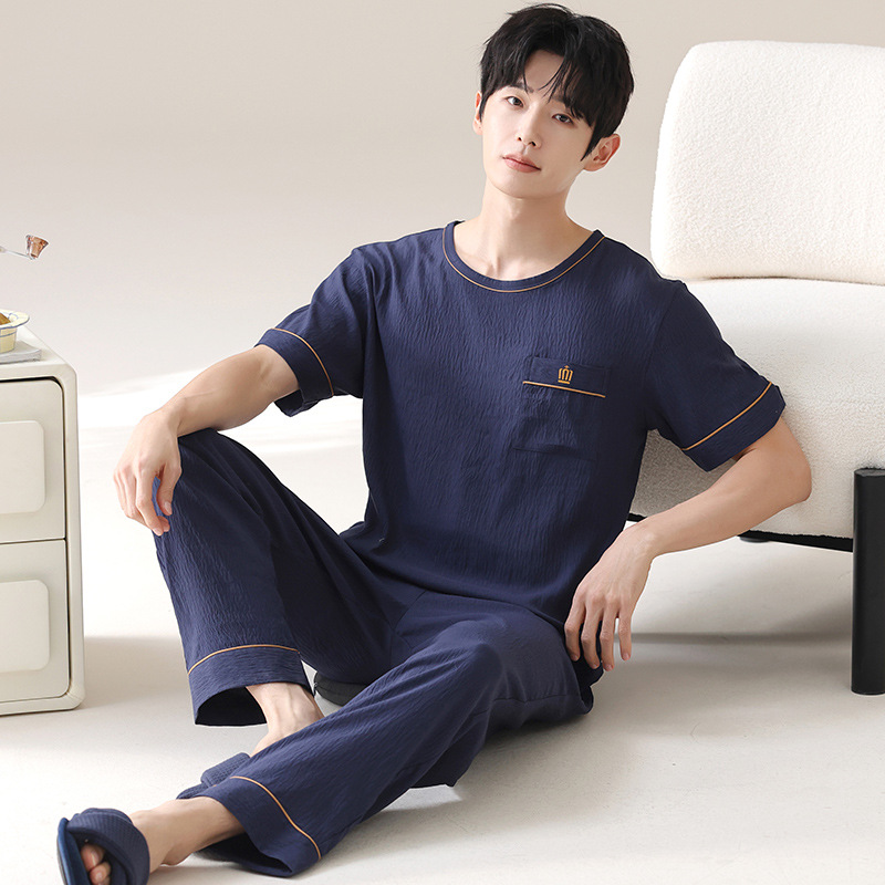 잠옷 남성용 여름 반팔 바지 심플 홈웨어 얇은 면 캐주얼 잠옷 어린 학생과 남성용 플러스 사이즈스토어 가기