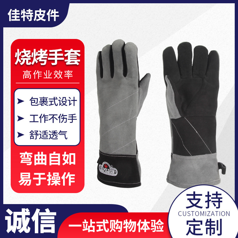 야외 바베큐 화상 방지 장갑 전자 레인지 전기 용접 야외 고온 장갑 소가죽 바베큐 장갑