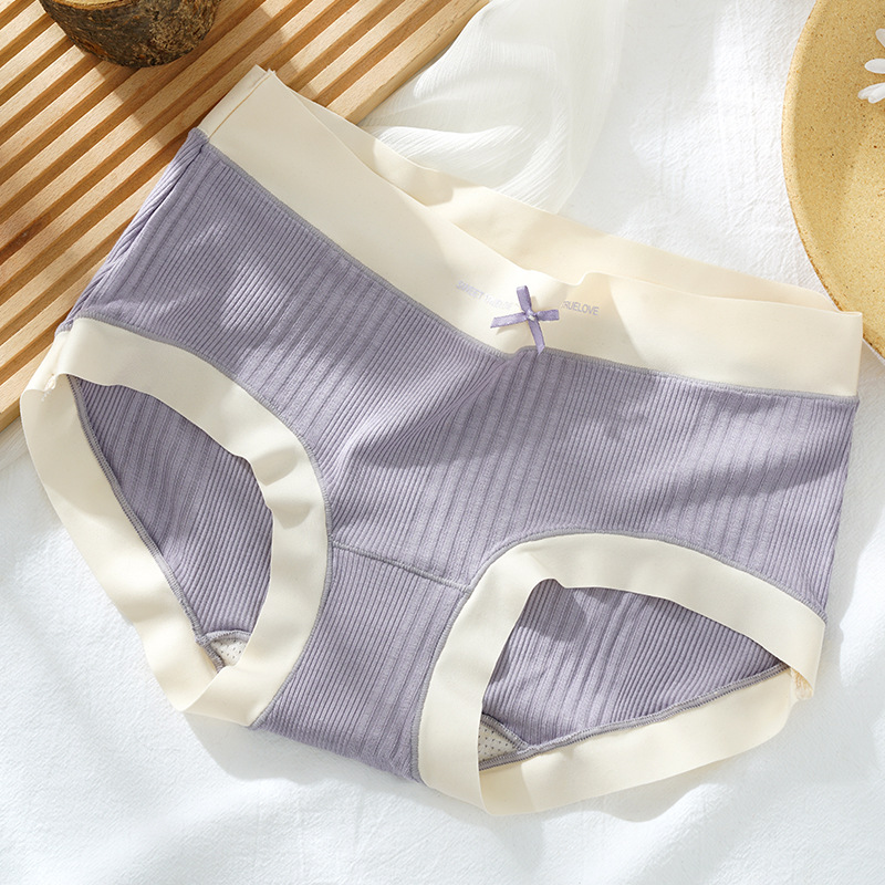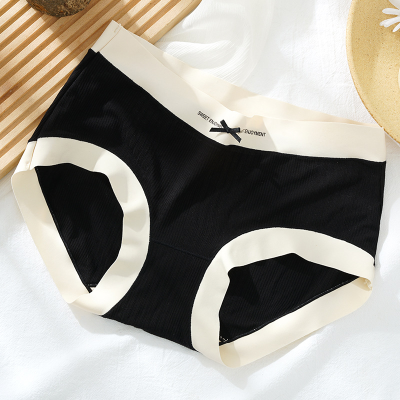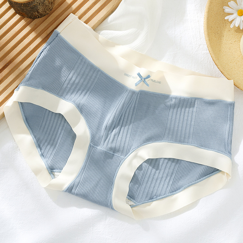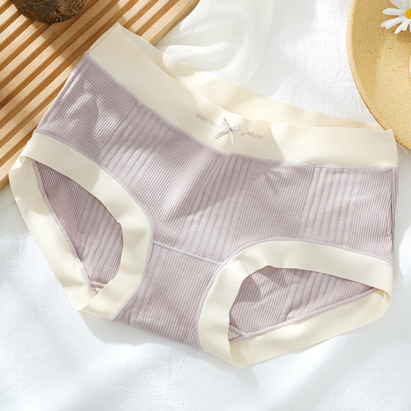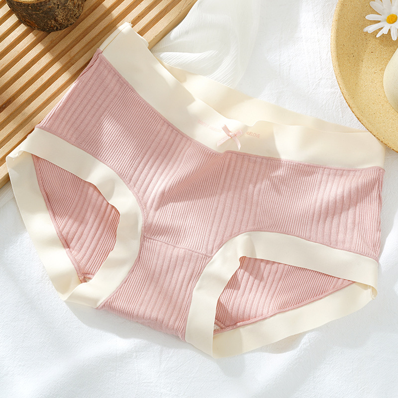 새로운 일본식 달콤한 활 소녀의 속옷 여성을위한 원활한 알몸 중간 허리 높은 탄성 면 편안한 팬티