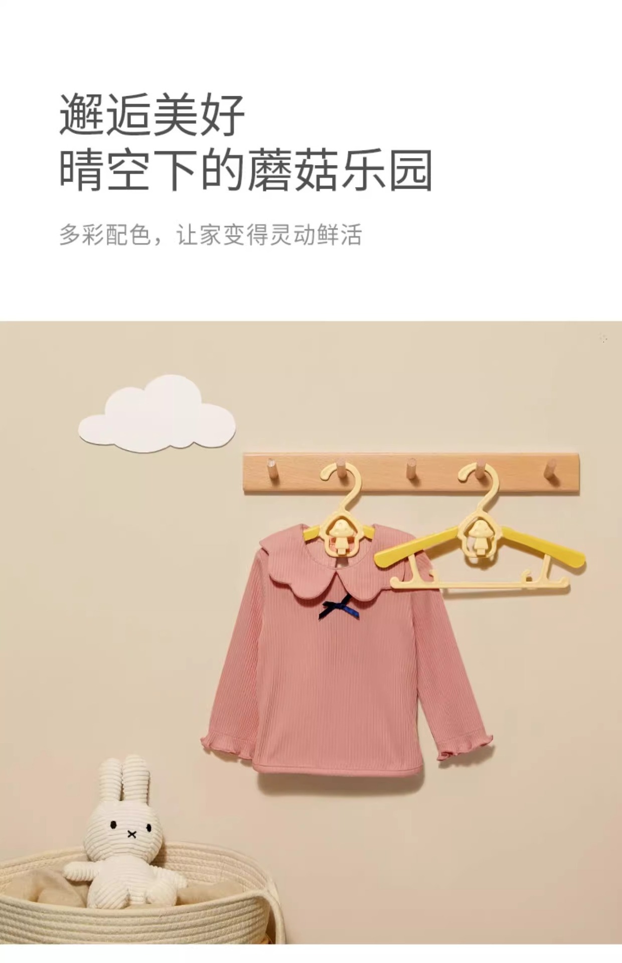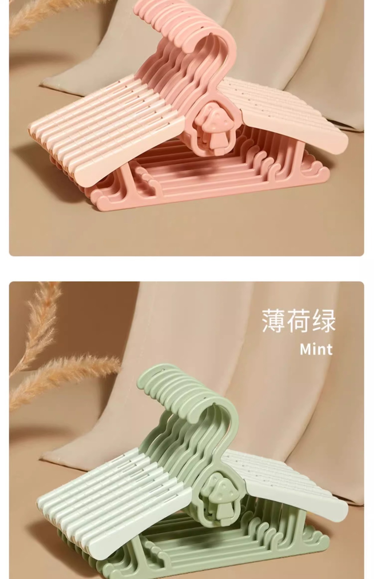 • 핑크 [버섯 접이식 옷걸이-5팩]