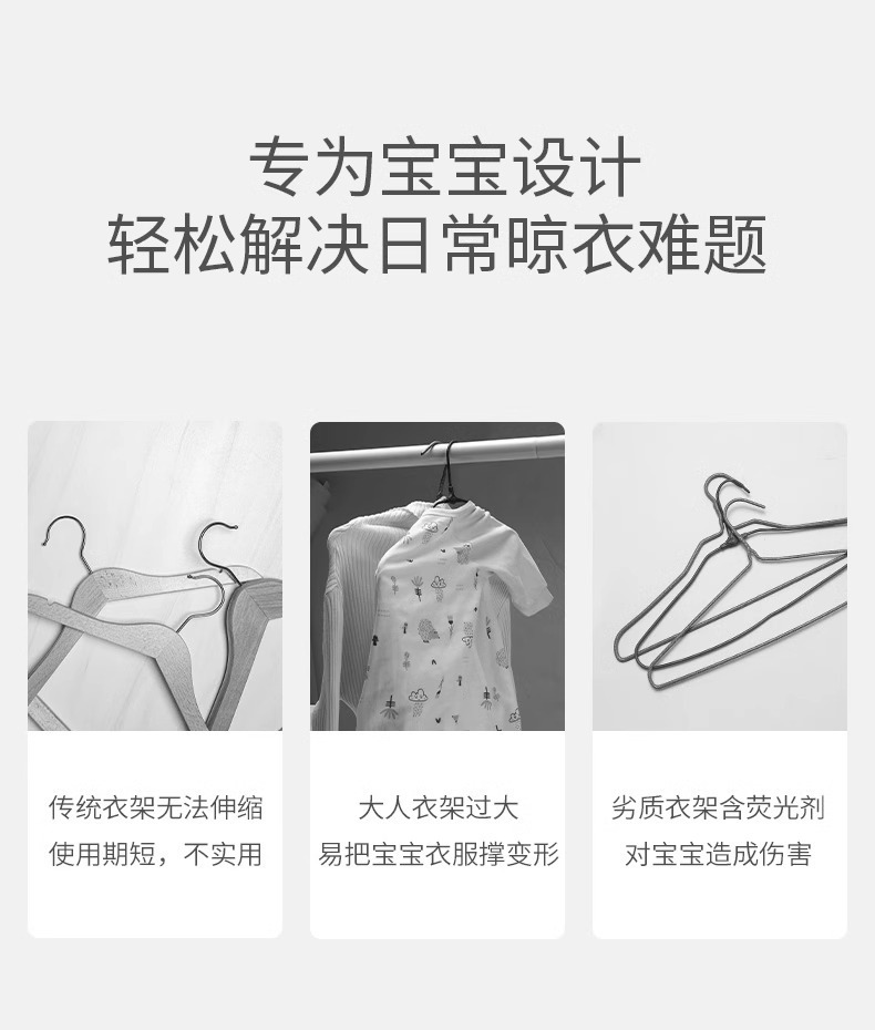 儿童衣架新款加粗宝宝多功能无痕衣挂衣撑防滑衣服架伸缩婴儿衣架