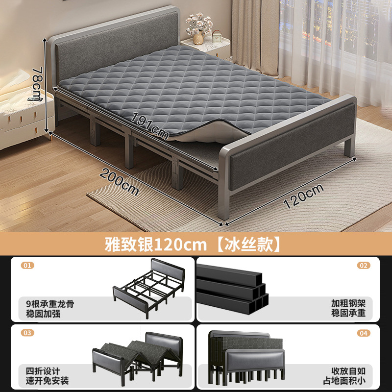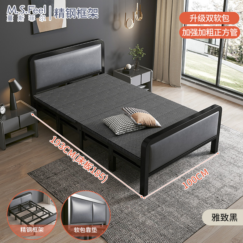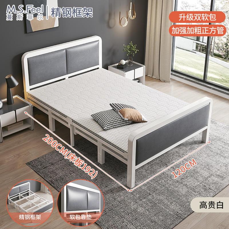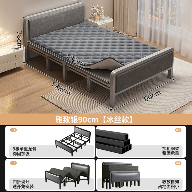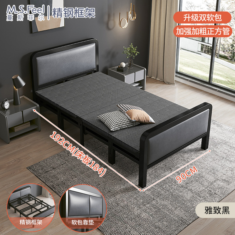 접이식 침대 싱글 가정용 간단한 낮잠 휴식 침대 임대 주택 강력하고 내구성 강화 더블 4 배 하드 보드 침대스토어 가기