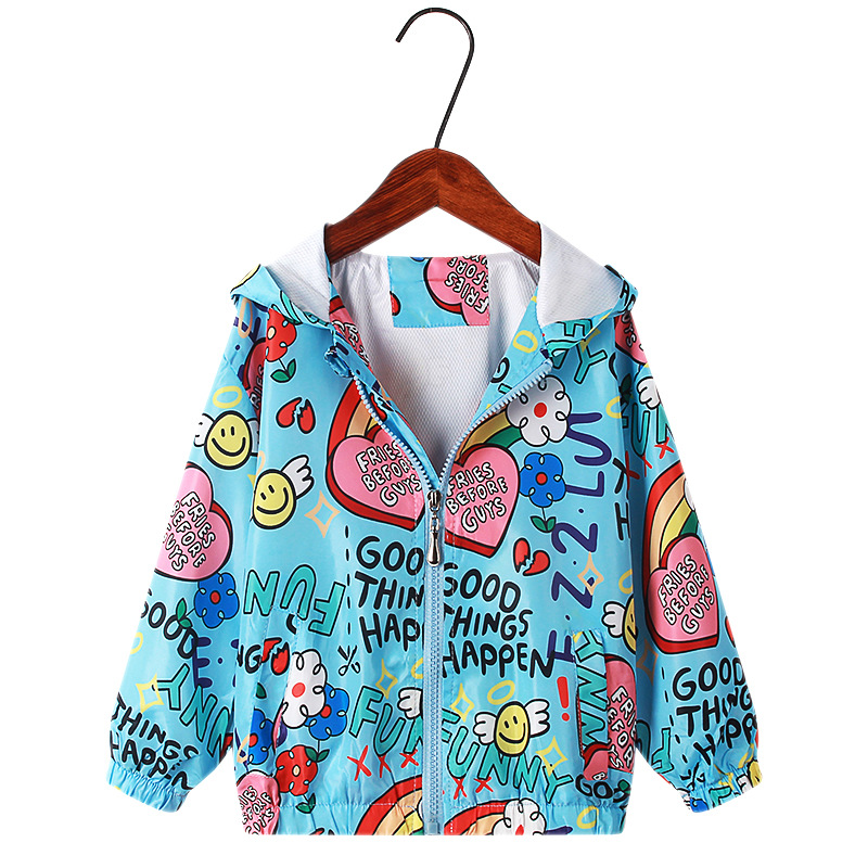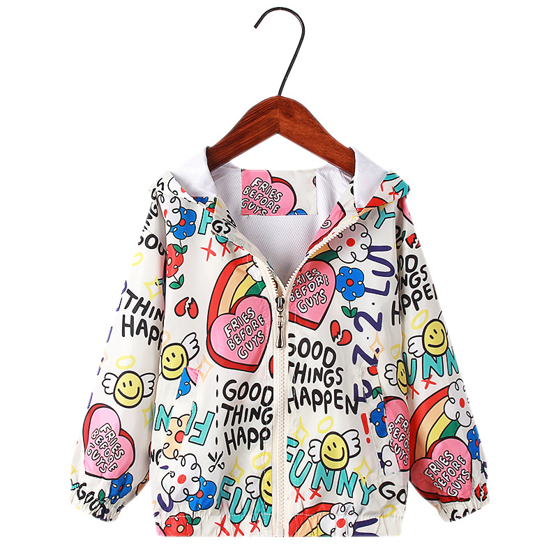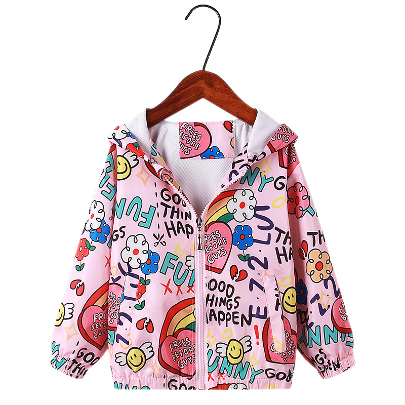 2024 봄 여름 신상 아동복, 여아용 올오버 프린트 재킷, 아동용 후드 지퍼 셔츠, 재고 있음스토어 가기