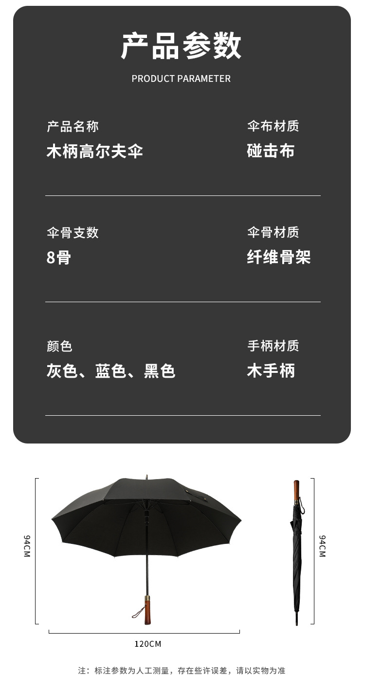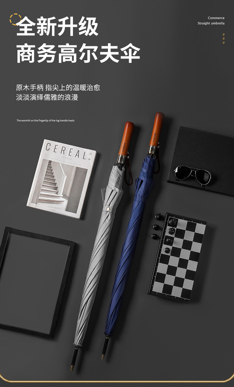 고급 원목 손잡이 섬유 골프 우산, 초대형 비즈니스 직선형 우산, 제조업체 맞춤형 전체 우산 로고 인쇄