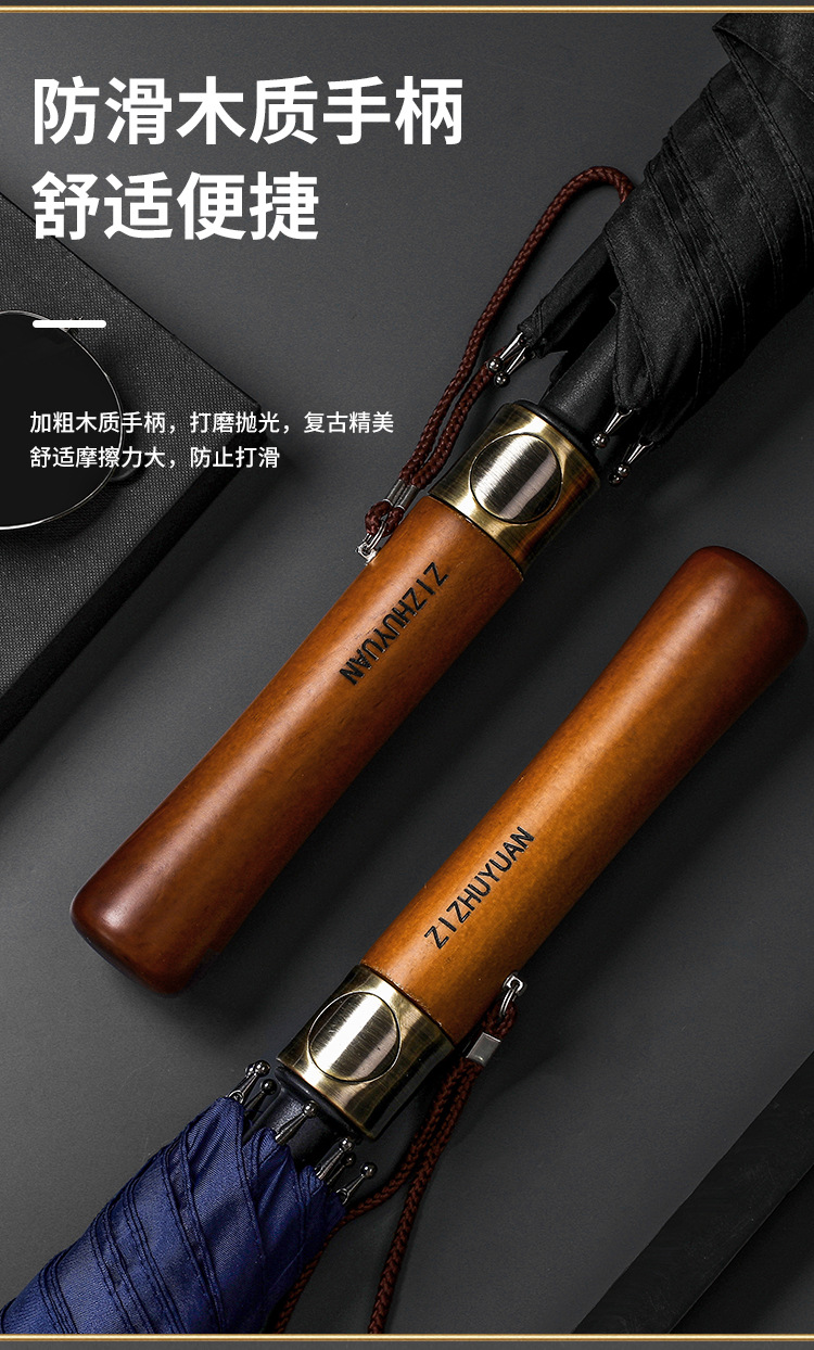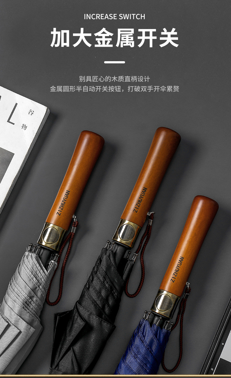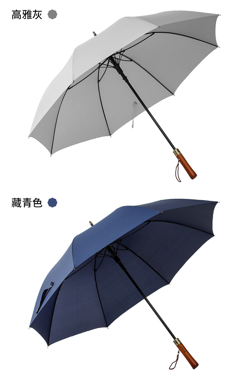 고급 원목 손잡이 섬유 골프 우산, 초대형 비즈니스 직선형 우산, 제조업체 맞춤형 전체 우산 로고 인쇄스토어 가기
