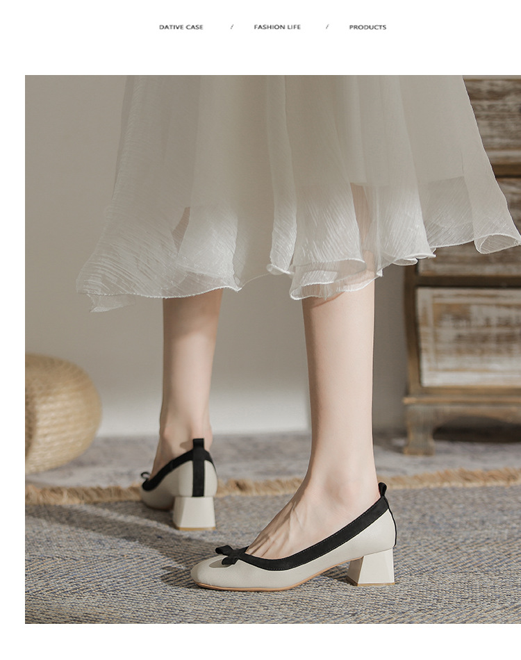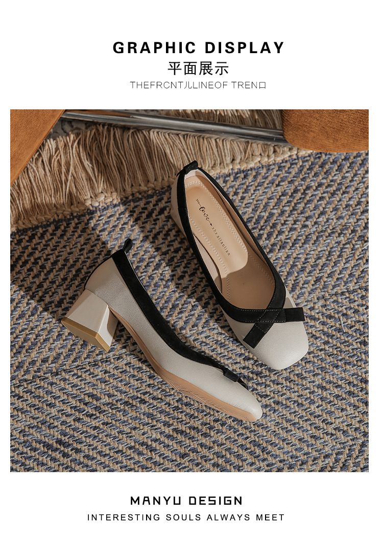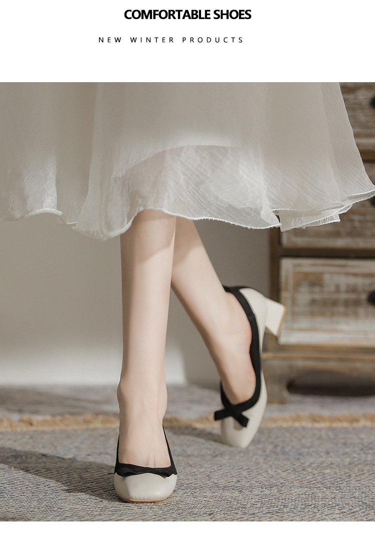2026 사계절 신상 스퀘어토 소프트 가죽 소프트솔 굽 높은 여성 패션 인기 펄 메리제인 슈즈스토어 가기