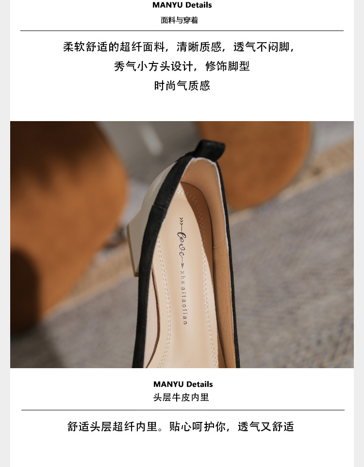 2026 사계절 신상 스퀘어토 소프트 가죽 소프트솔 굽 높은 여성 패션 인기 펄 메리제인 슈즈