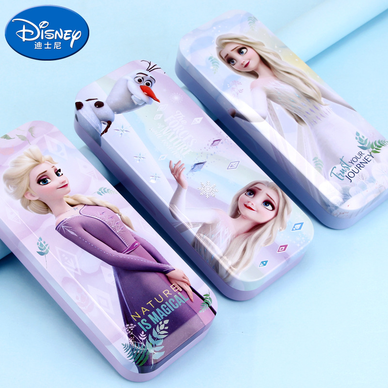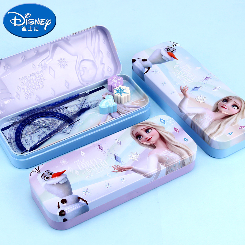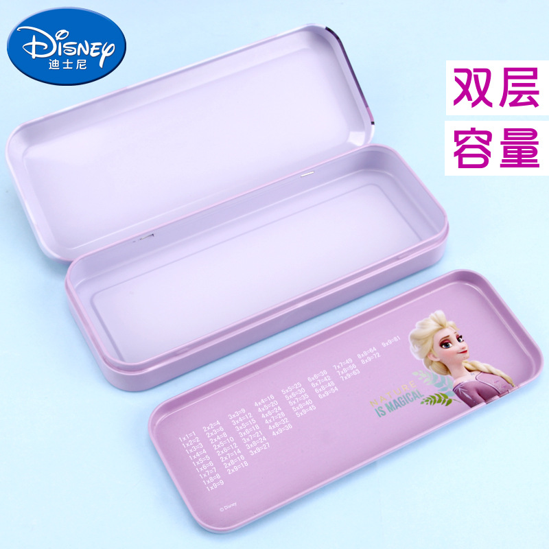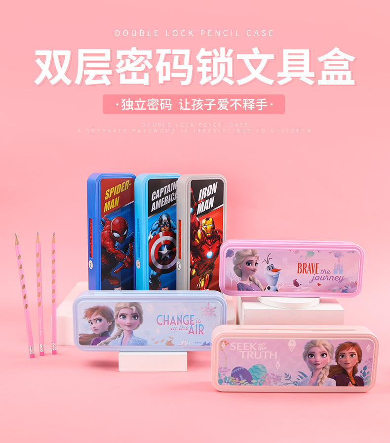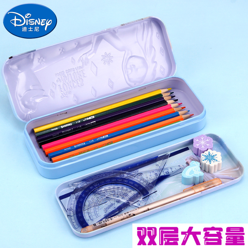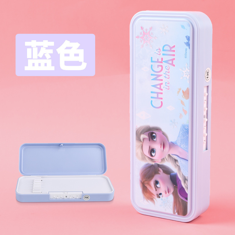 디즈니 문구 상자 조합 잠금 더블 플라스틱 연필 케이스 초등학생 1 학년 귀여운 아이스 틴플레이트 펜 케이스