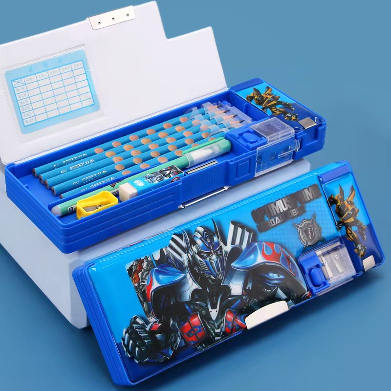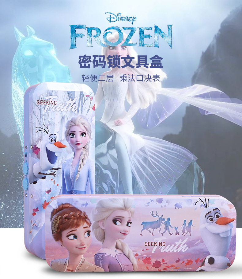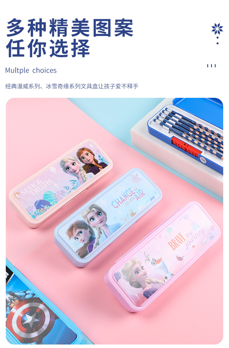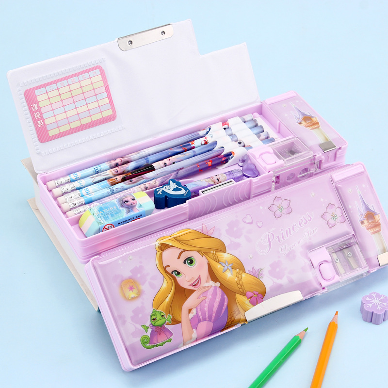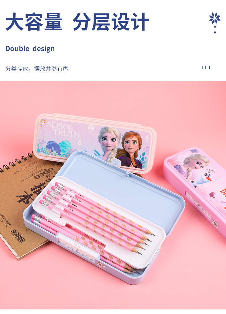 디즈니 문구 상자 조합 잠금 더블 플라스틱 연필 케이스 초등학생 1 학년 귀여운 아이스 틴플레이트 펜 케이스