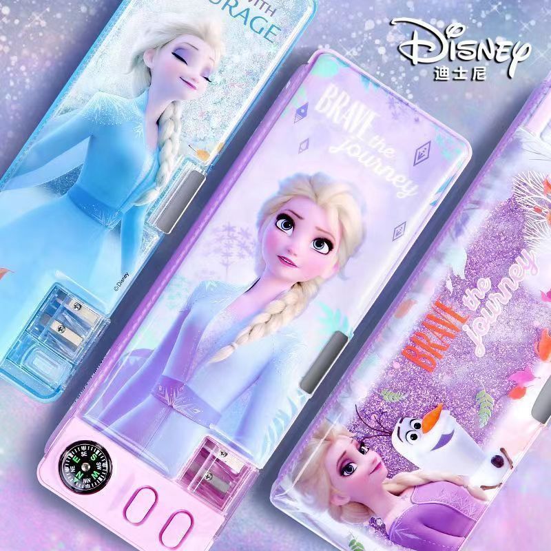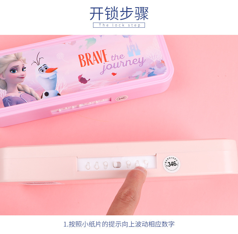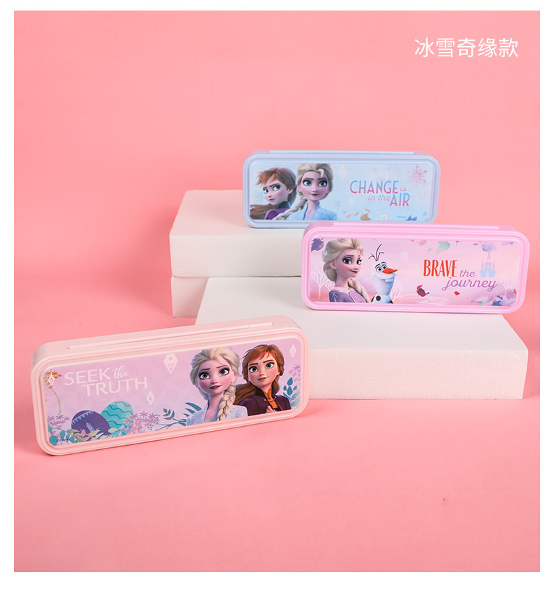 디즈니 문구 상자 조합 잠금 더블 플라스틱 연필 케이스 초등학생 1 학년 귀여운 아이스 틴플레이트 펜 케이스스토어 가기