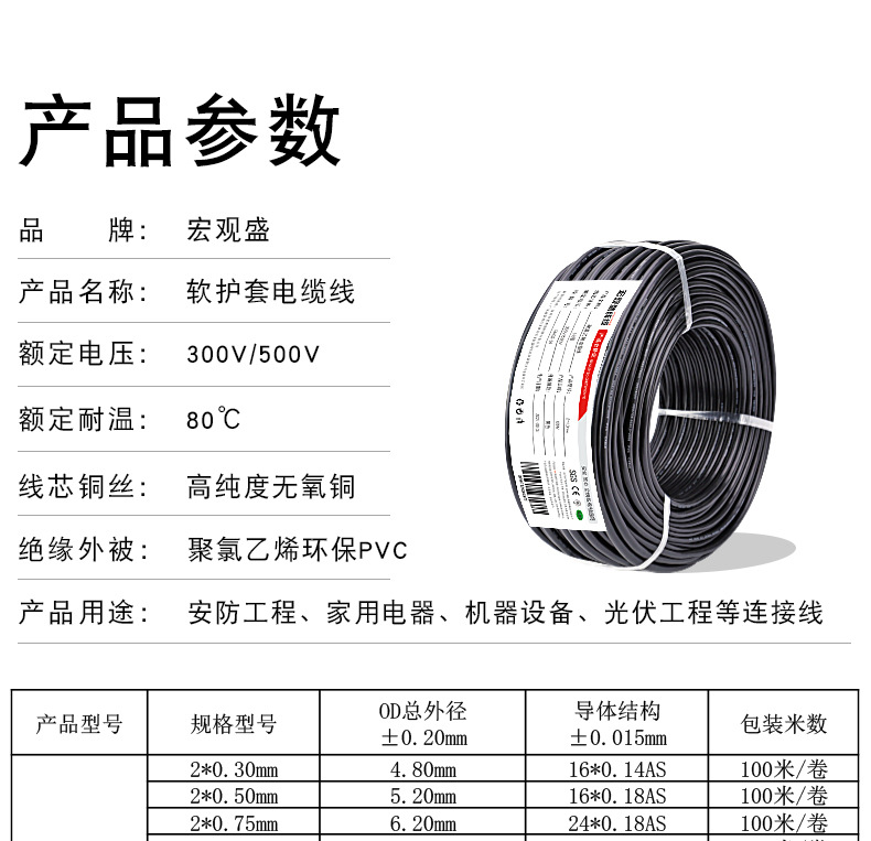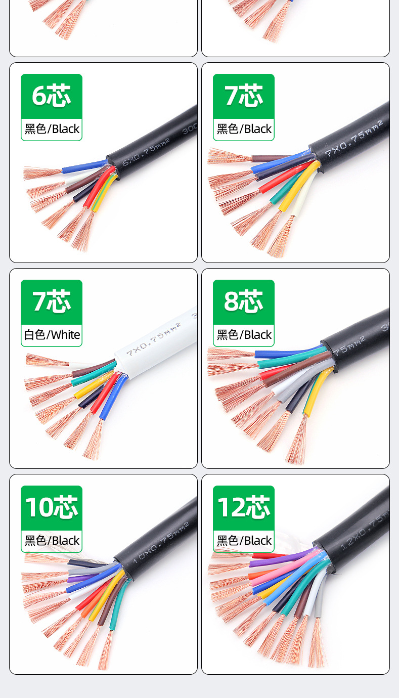 매크로 순수 구리 케이블 2 코어 3 코어 4 코어 0.5 0.75 1 1.5mm 전원 기계 제어 칼집 라인
