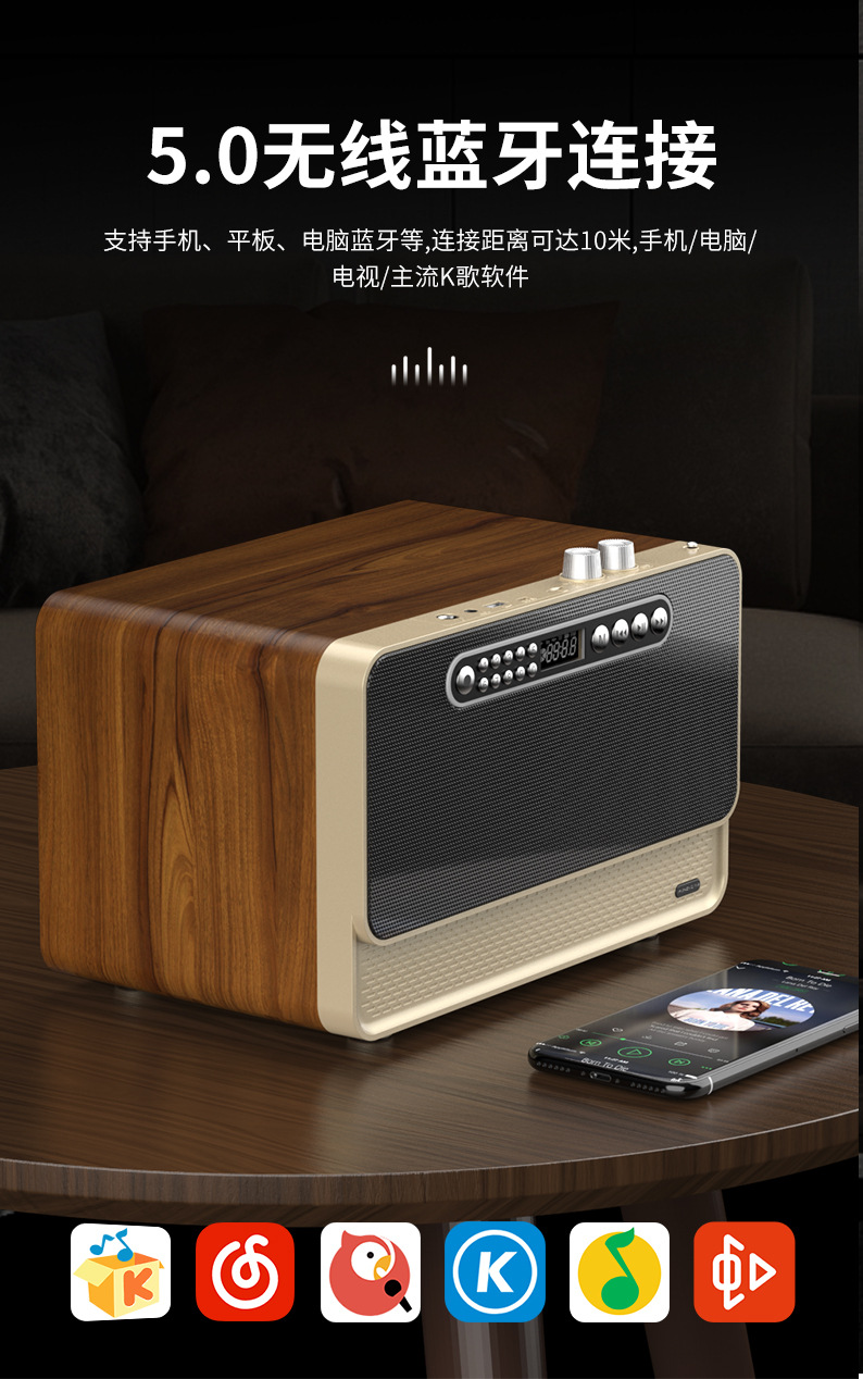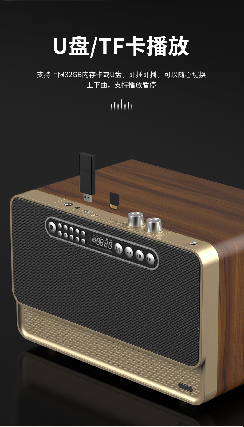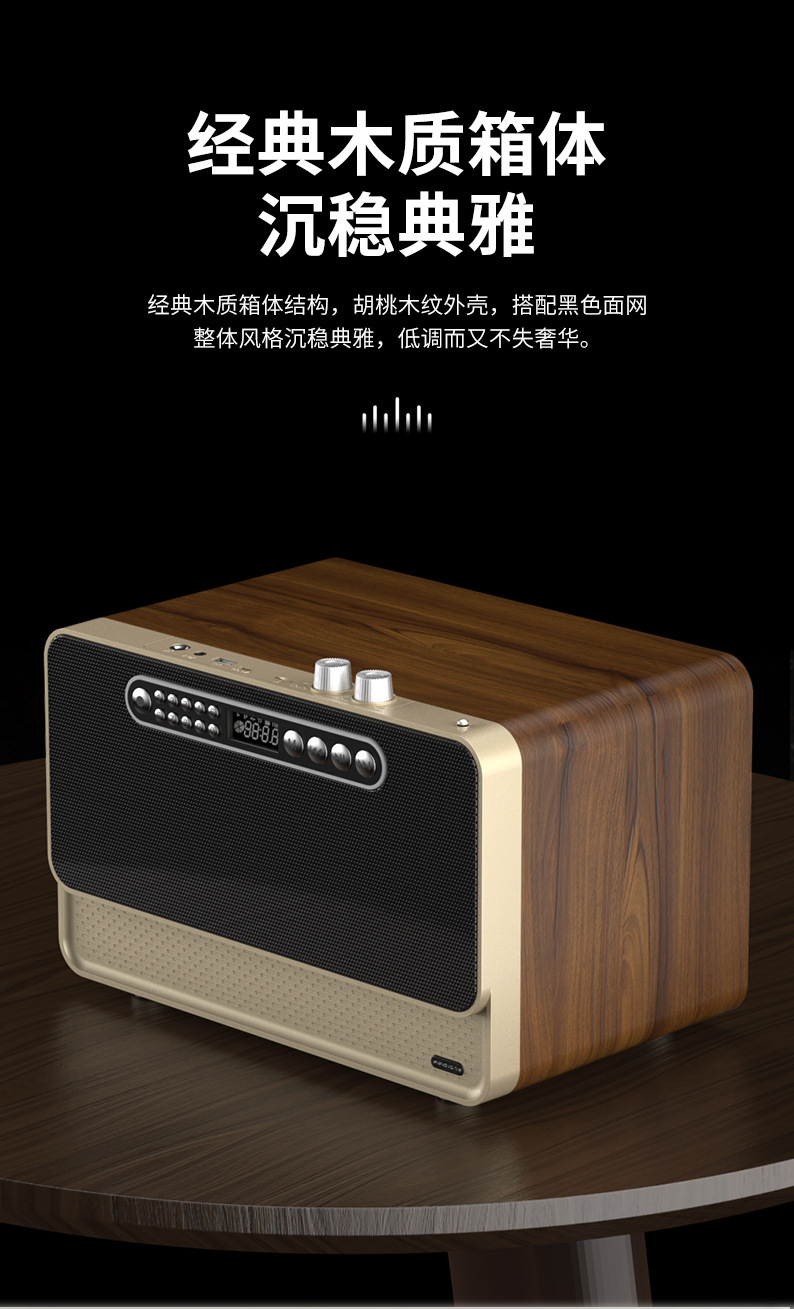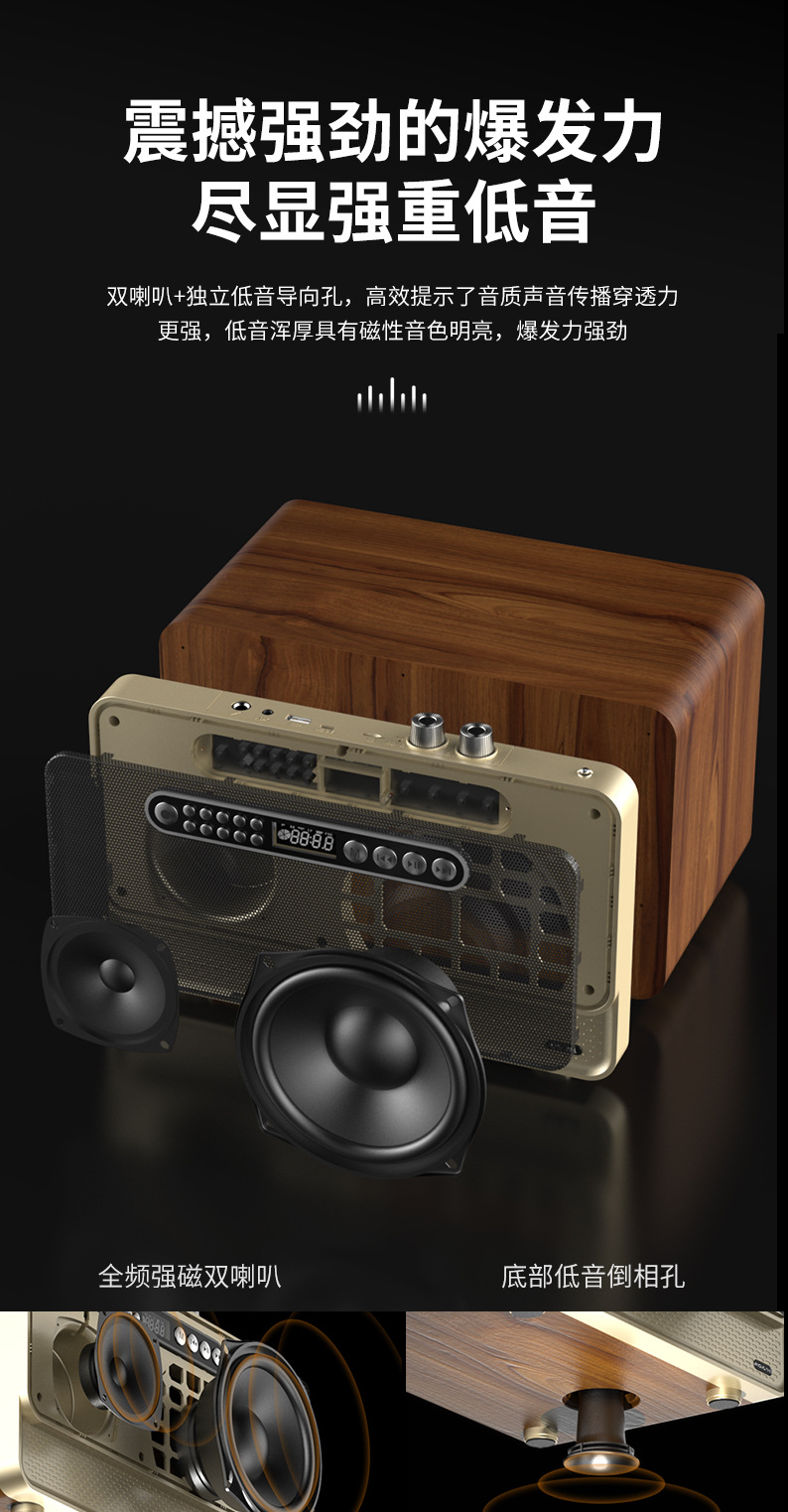 공장 직판 인기상품 W1K 노래방 블루투스 스피커 나무제 홈 무선 카드삽입형 가정용 라이브 방송 스피커 개인 모델스토어 가기