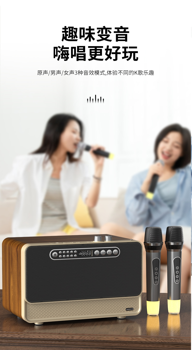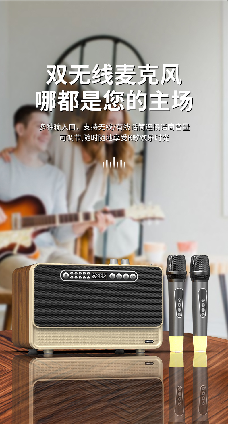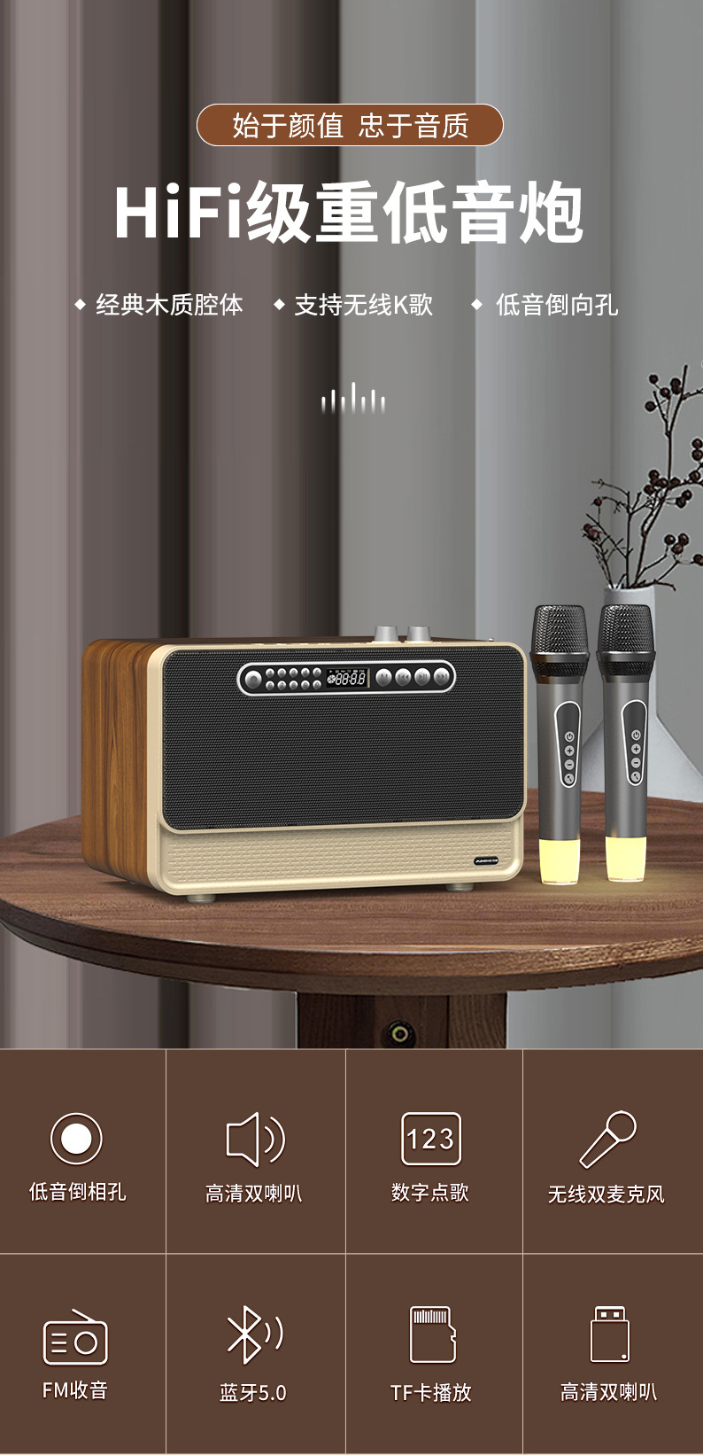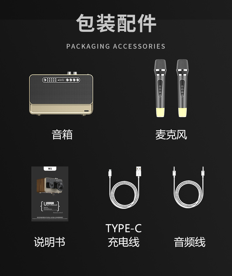 공장 직판 인기상품 W1K 노래방 블루투스 스피커 나무제 홈 무선 카드삽입형 가정용 라이브 방송 스피커 개인 모델스토어 가기