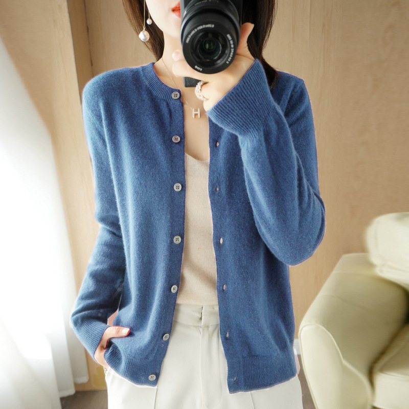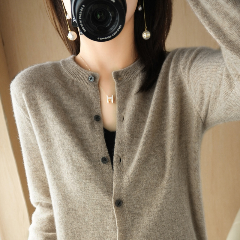 새로운 2025 가을, 겨울 OL 기질 카디건 긴팔 라운드 넥 스트레이트 스웨터 여성 니트웨어 도매스토어 가기