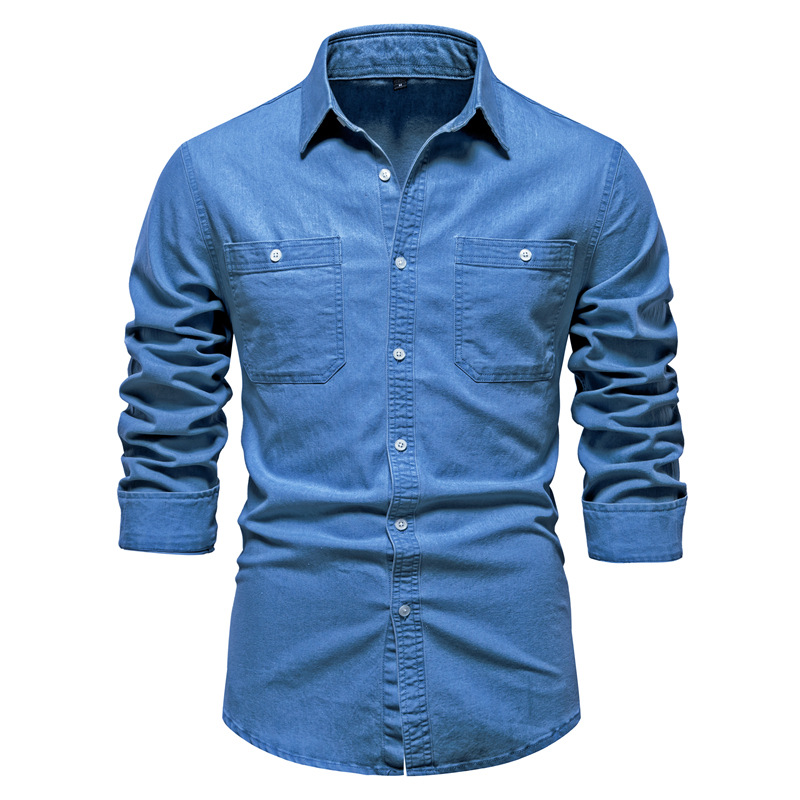 2024 대외 무역 국경 남성 유럽 사이즈 데님 셔츠 남성 캐주얼 단색 남성 Dannin 긴팔 셔츠
