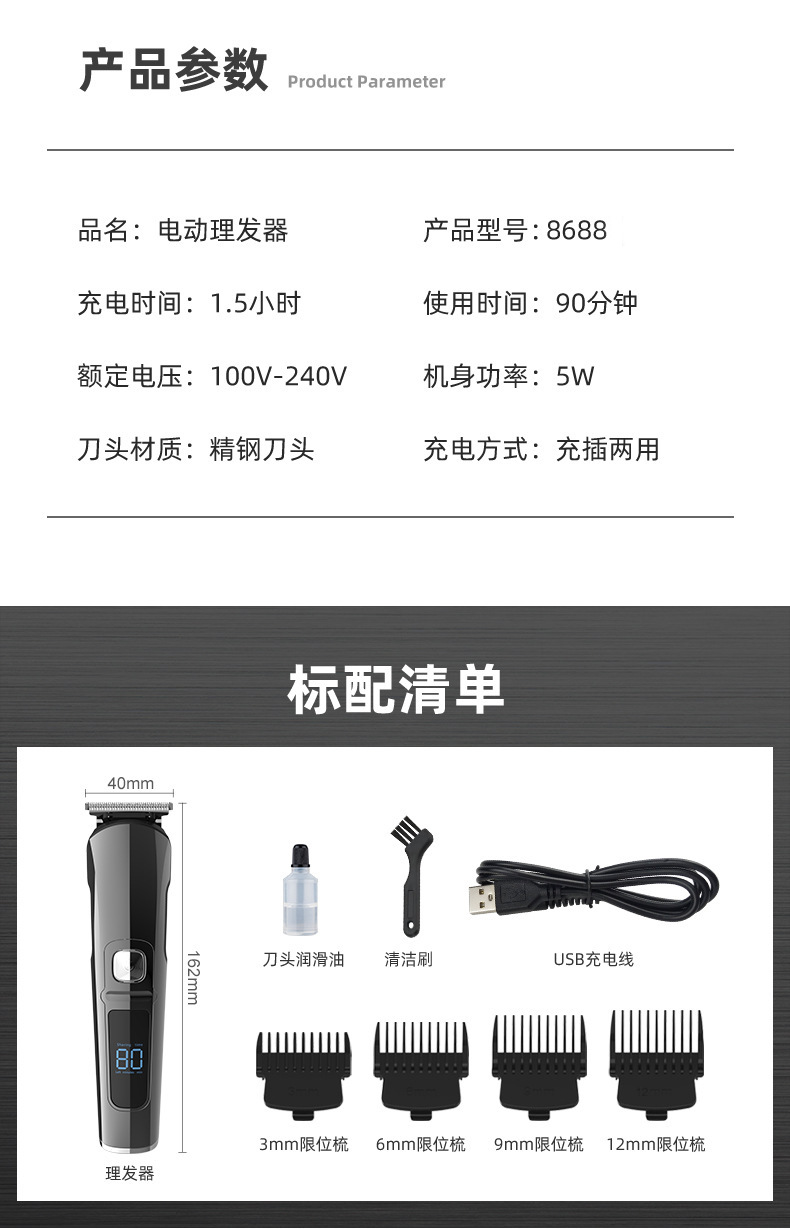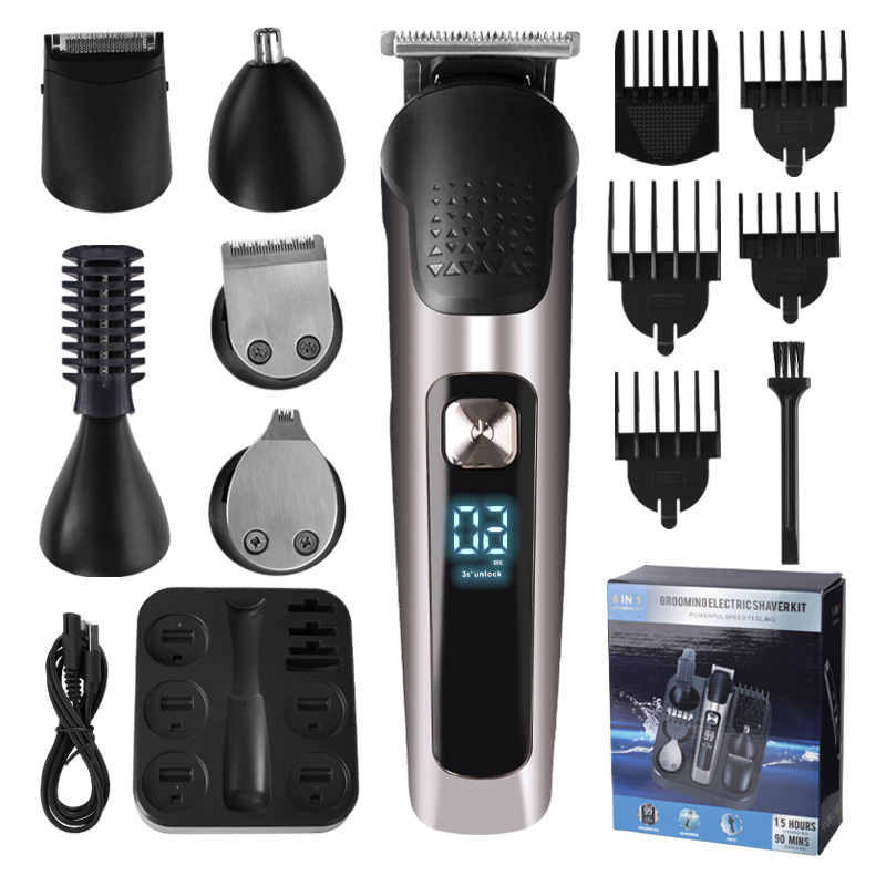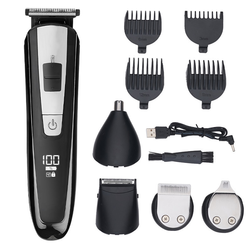크로스 보더 핫 5-in-one LCD 디지털 디스플레이 전기 클리퍼 푸시 화이트 푸시 라이트 조각 코 헤어 클리퍼