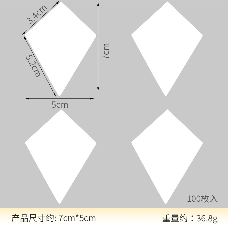 • 다이아몬드 모양의 패치워크 종이 템플릿 - 가장 넓은 50mm, 가장 긴 70mm, 다이아몬드 모양과 함께 사용할 수 있습니다.