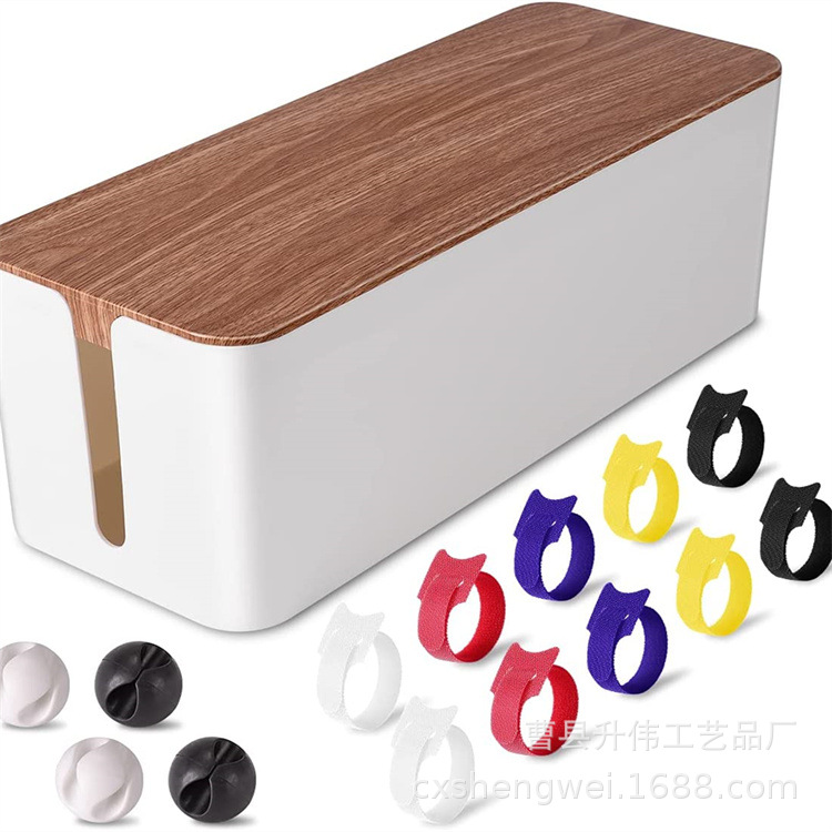 유럽식 목재 보관 및 마감 상자 간단한 데스크탑 우드 그레인 컬러 케이블 보관 상자 거실 연구 수납 상자