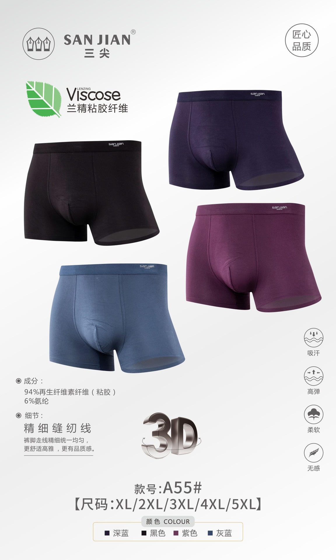 새로운 3 점 남성 속옷 모달 남성 복서 속옷 통기성 편안한 남성 복서 청소년 속옷 도매