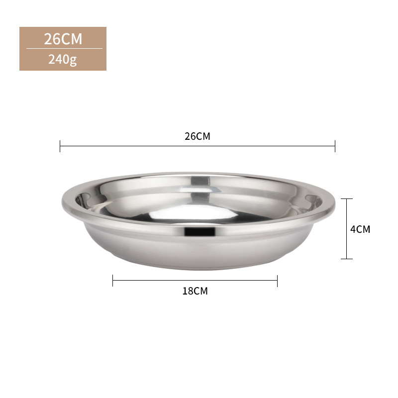 스테인레스 스틸 디스크 프렌치 딥 플레이트 매점 사이트 스테인레스 플레이트 멀티 사이즈 도매 접시 뒷면 높이