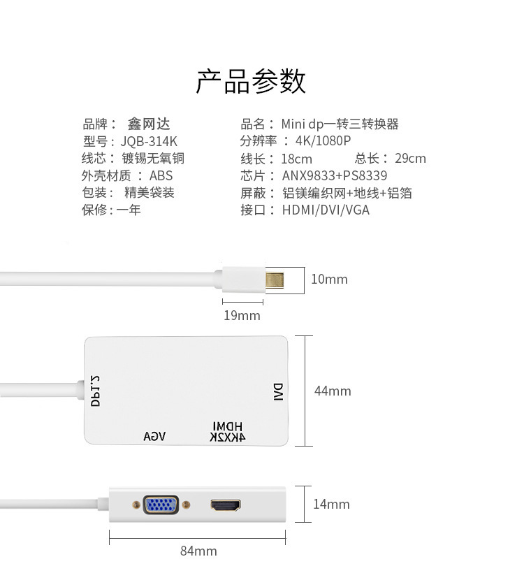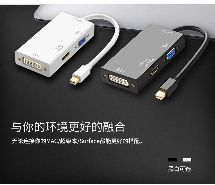 DP to HDTV VGA DVI 변환기 3-in-1 노트북 미니 라이트닝 어댑터 3-in-1 어댑터
