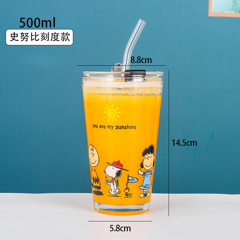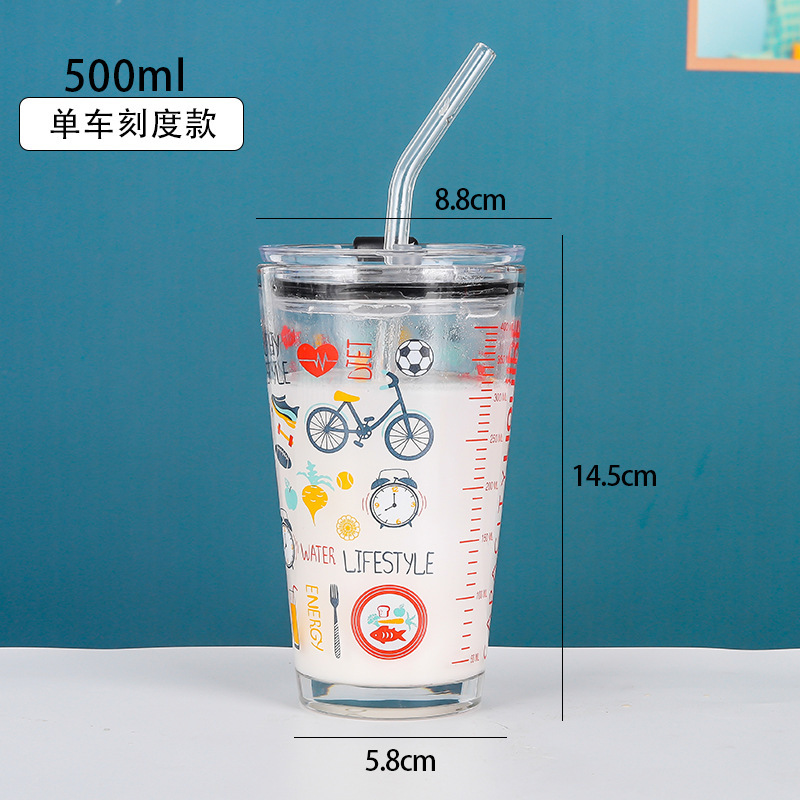 도매 하이 컬러 값 글라스 컵 스케일 뚜껑 포함 빨대 컵 학생 컵 우유 컵 머리카락 세대