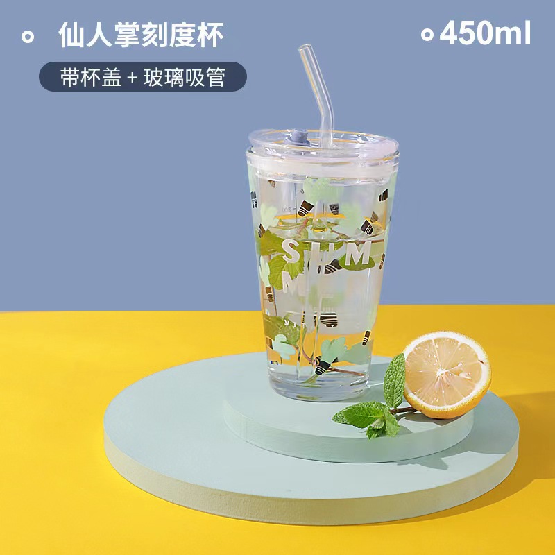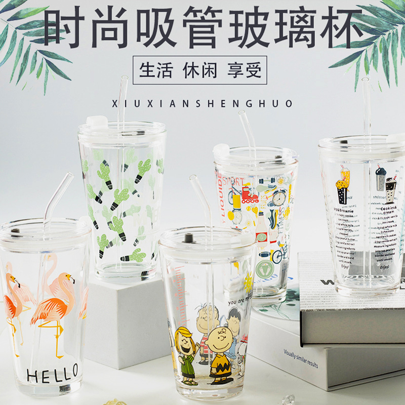 도매 하이 컬러 값 글라스 컵 스케일 뚜껑 포함 빨대 컵 학생 컵 우유 컵 머리카락 세대스토어 가기