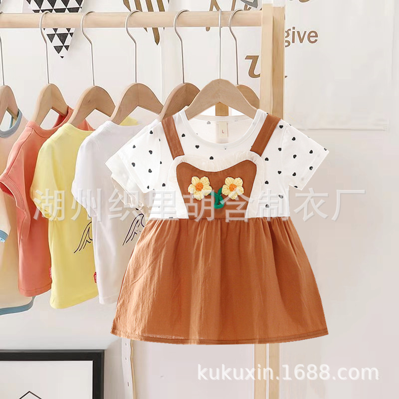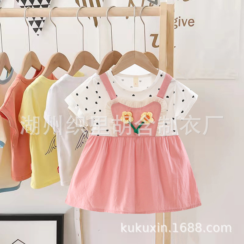 204 여름 아동복 어린이 만화 원피스 가짜 투피스 소녀 새로운 오델면 반소매 원피스스토어 가기