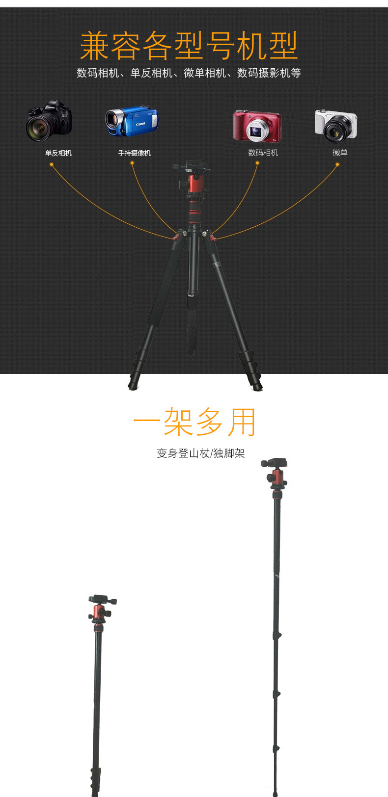 专业三脚架适用摄影摄影、直播、户外等等