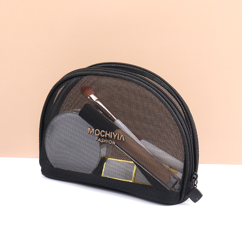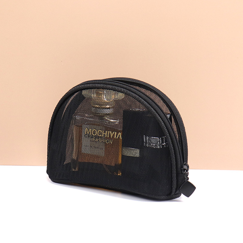 공장 현장 공급 여행 저장 반원형 화장품 가방 공장 도매 온라인 상점 뜨거운 판매 더블 레이어 투명 거즈