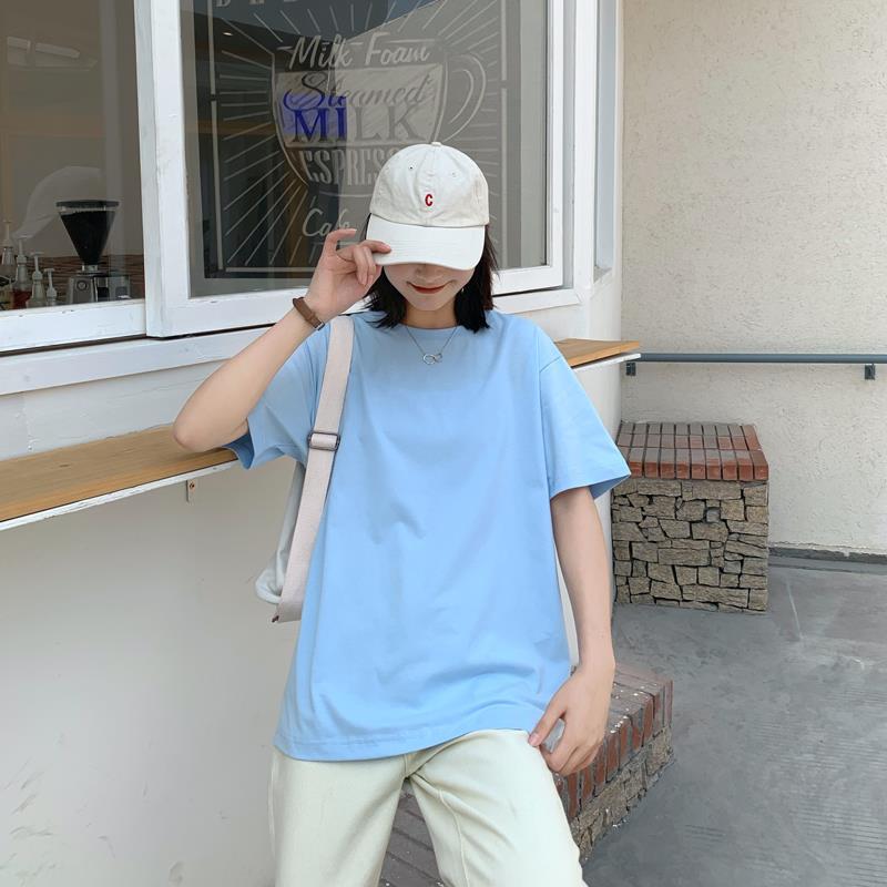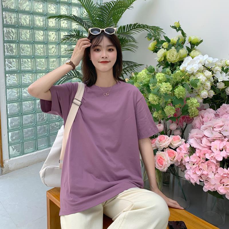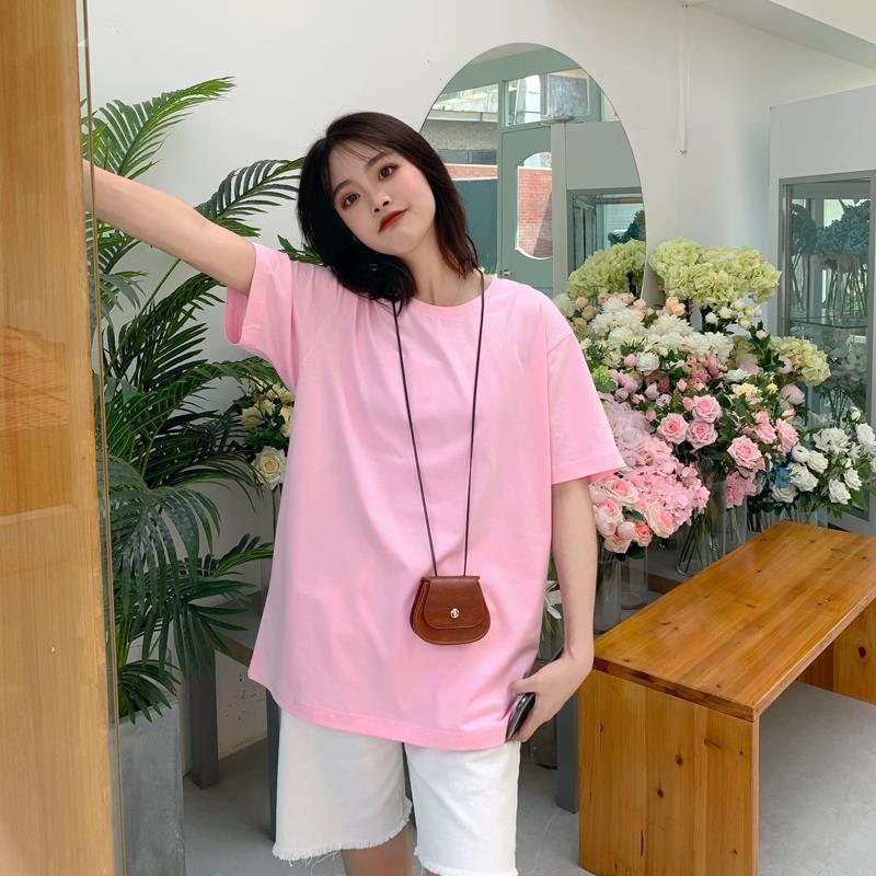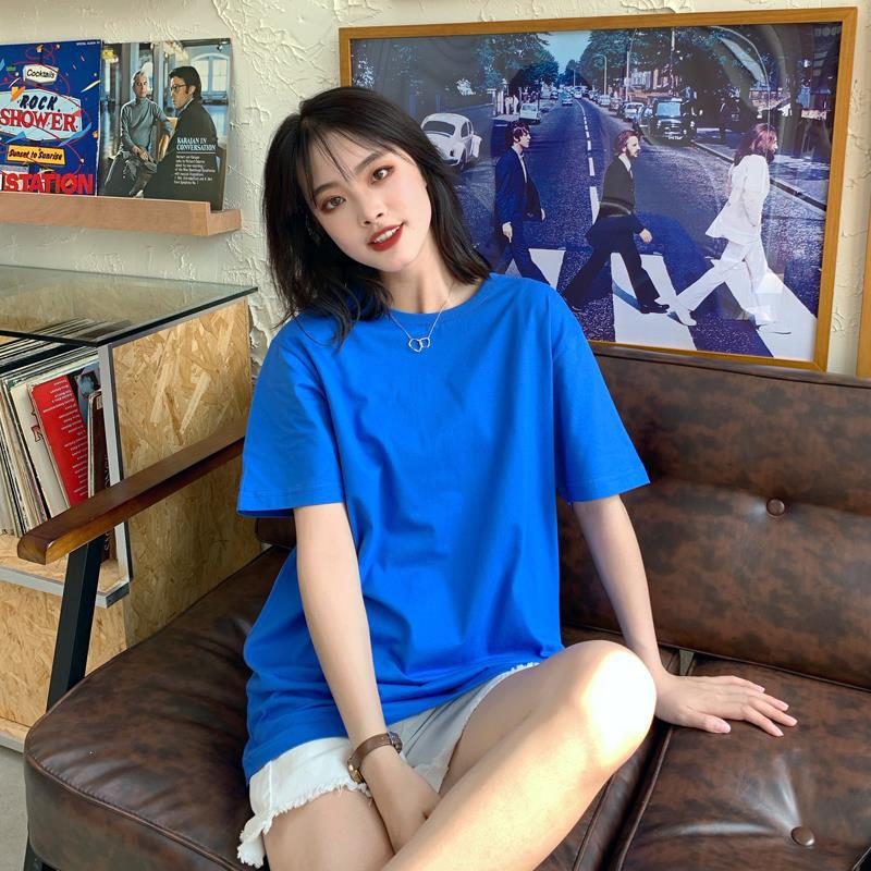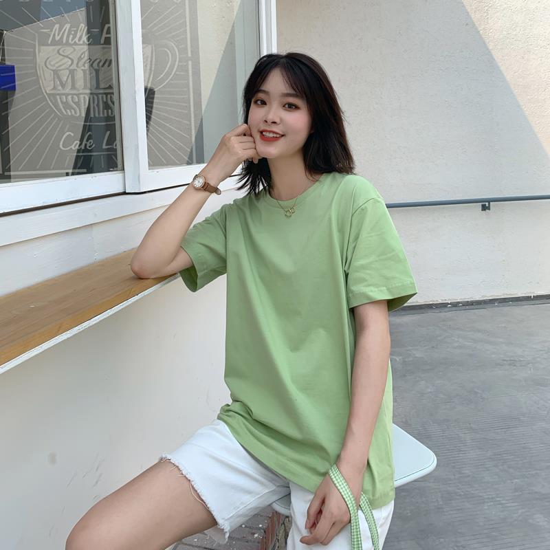 중간 길이 반팔 티셔츠 여아 새로운 여름 베이스 셔츠 티셔츠 멀티 컬러 루즈한 솔리드 컬러 베이스 탑 인 트렌디스토어 가기