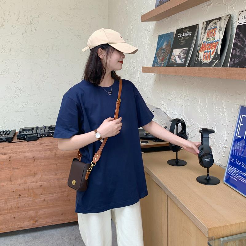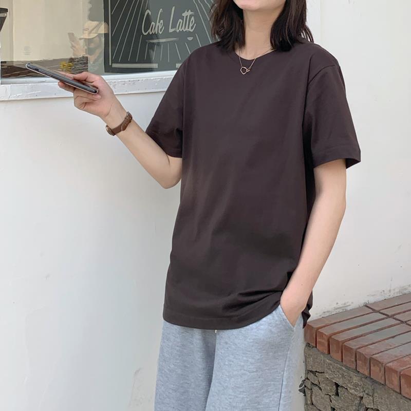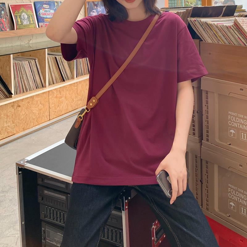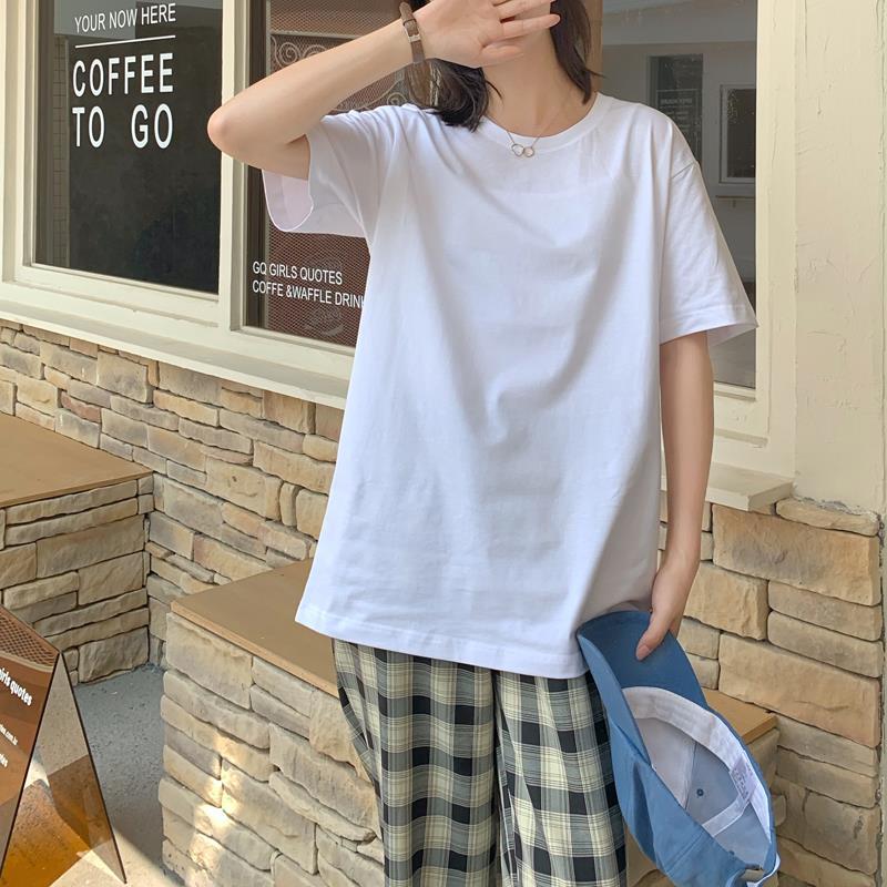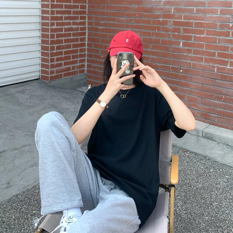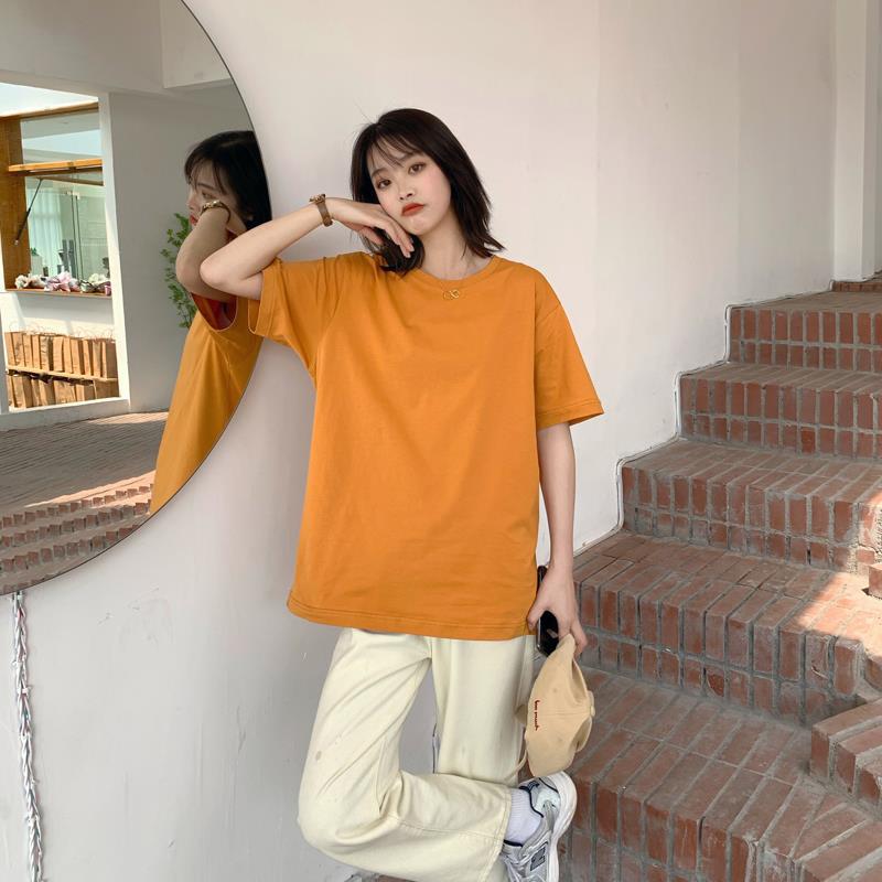 중간 길이 반팔 티셔츠 여아 새로운 여름 베이스 셔츠 티셔츠 멀티 컬러 루즈한 솔리드 컬러 베이스 탑 인 트렌디스토어 가기