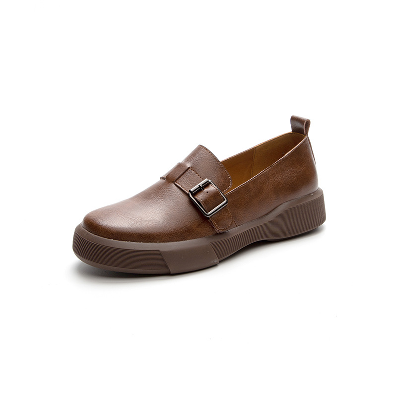 영국 스타일의 작은 가죽 신발 여성의 2025 년 봄과 가을 새로운 플러스 사이즈 여성 신발 고무 복고풍 부드러운 바닥 발 플랫 신발스토어 가기