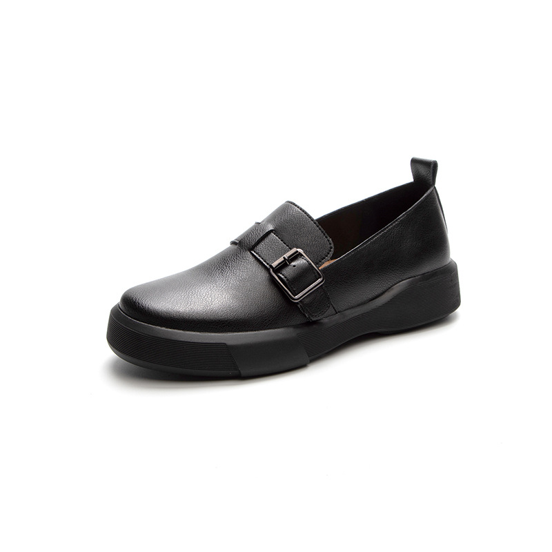 영국 스타일의 작은 가죽 신발 여성의 2025 년 봄과 가을 새로운 플러스 사이즈 여성 신발 고무 복고풍 부드러운 바닥 발 플랫 신발