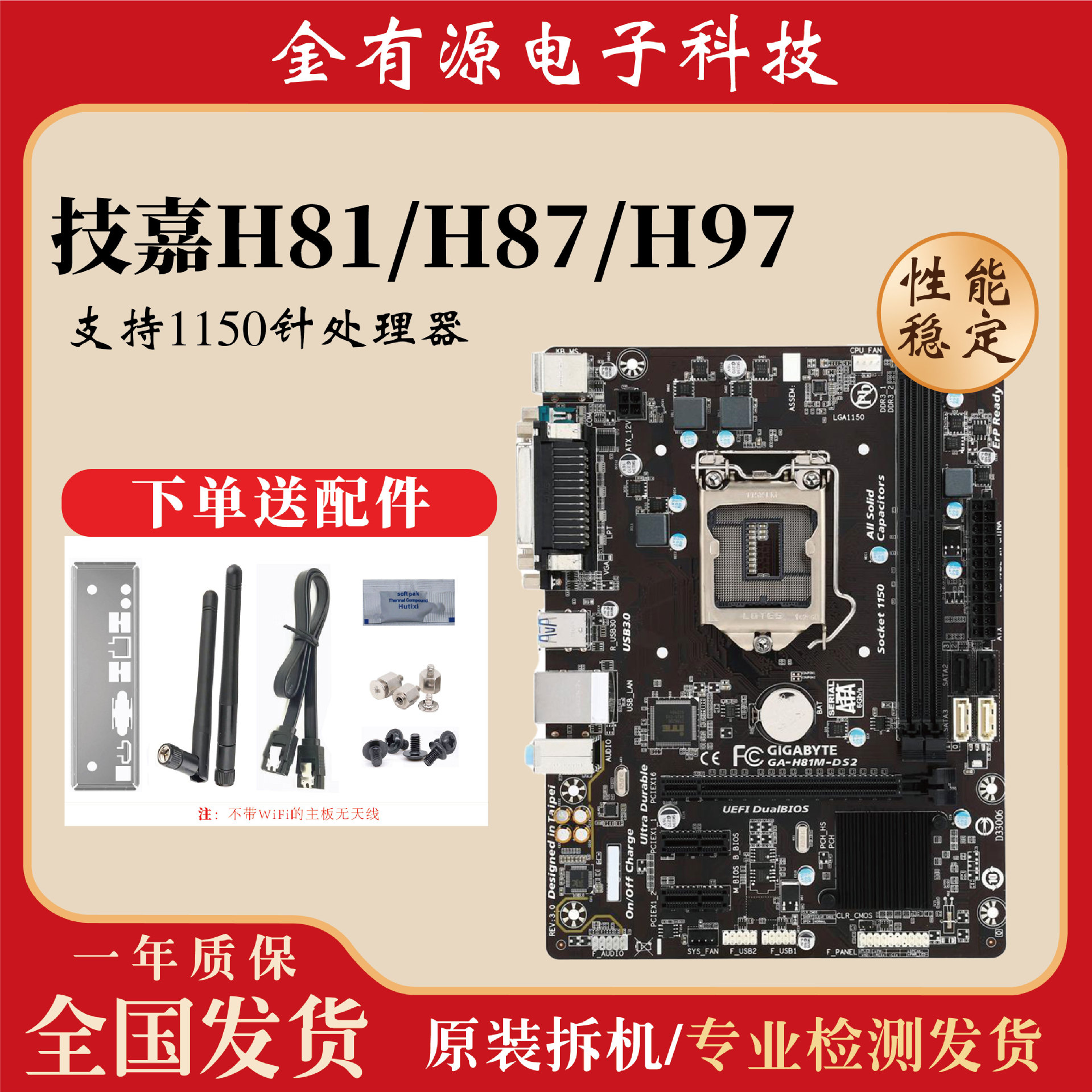 主板型号为:技嘉H81/H87/H97/Q87芯片组 ATX/MATX/IATX板 1150针,1150主板,DDR3 内存,主板配件只有挡板 没有其他的配件和包装,成色接近9-9.5成新 ,主板在不影响二次销售的情况下支持7天无理退款!测试好功能发货!!