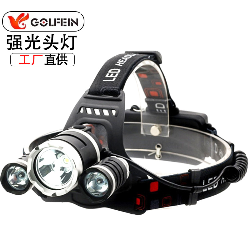 크로스 보더 강한 빛 유도 전조등 전조등 T6 고정 초점 고출력 LED 충전 전조등 야외 야간 낚시 장거리 조명
