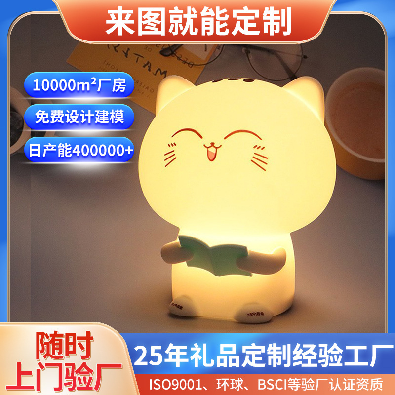 만화 고양이 실리콘 야간 조명 어린이 팻 라이트 led 눈 보호 분위기 조명 충전 유도 램프 책상 램프 커스터마이징