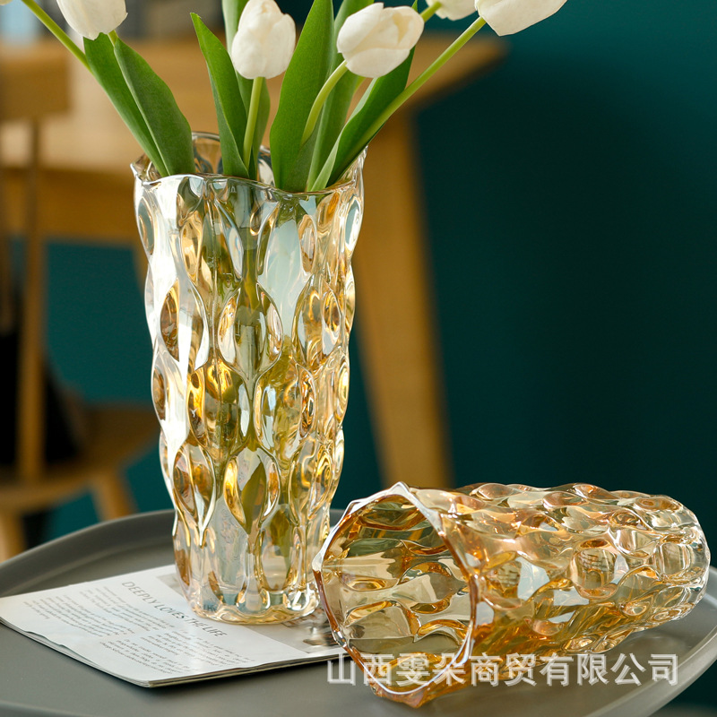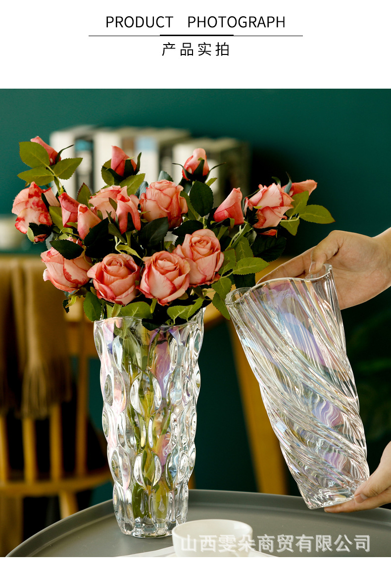 도매 크리스탈 유리 꽃병 북유럽 스타일 럭셔리 류큐 라이트 거실 꽃꽂이 장식 호텔 백합 꽃