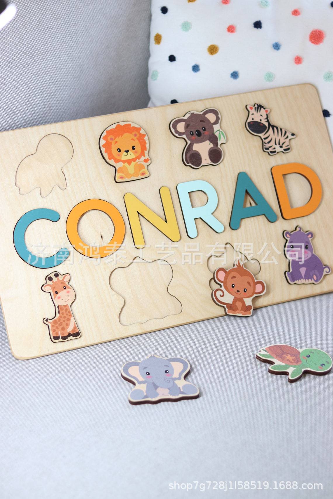 나무 휴대용 직소 퍼즐 조기 교육 계몽 유치원 교육 보조 만화 동물 편지 직소 퍼즐 해외 무역 국경 도매스토어 가기