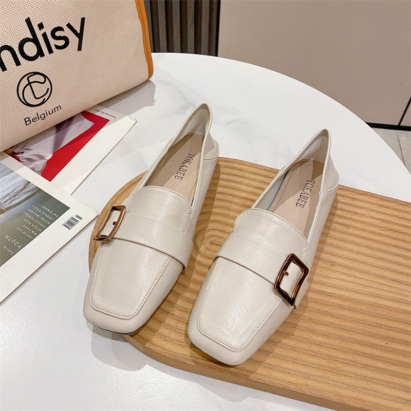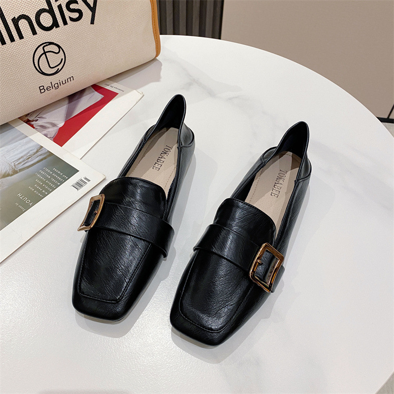 봄 2023 새로운 스타일 싱글 슈즈 여성용 스퀘어 토 스몰 가죽 슈즈 로퍼 슬립온 브리티시 스타일 올매치 싱글 슈즈 플랫 트렌디스토어 가기